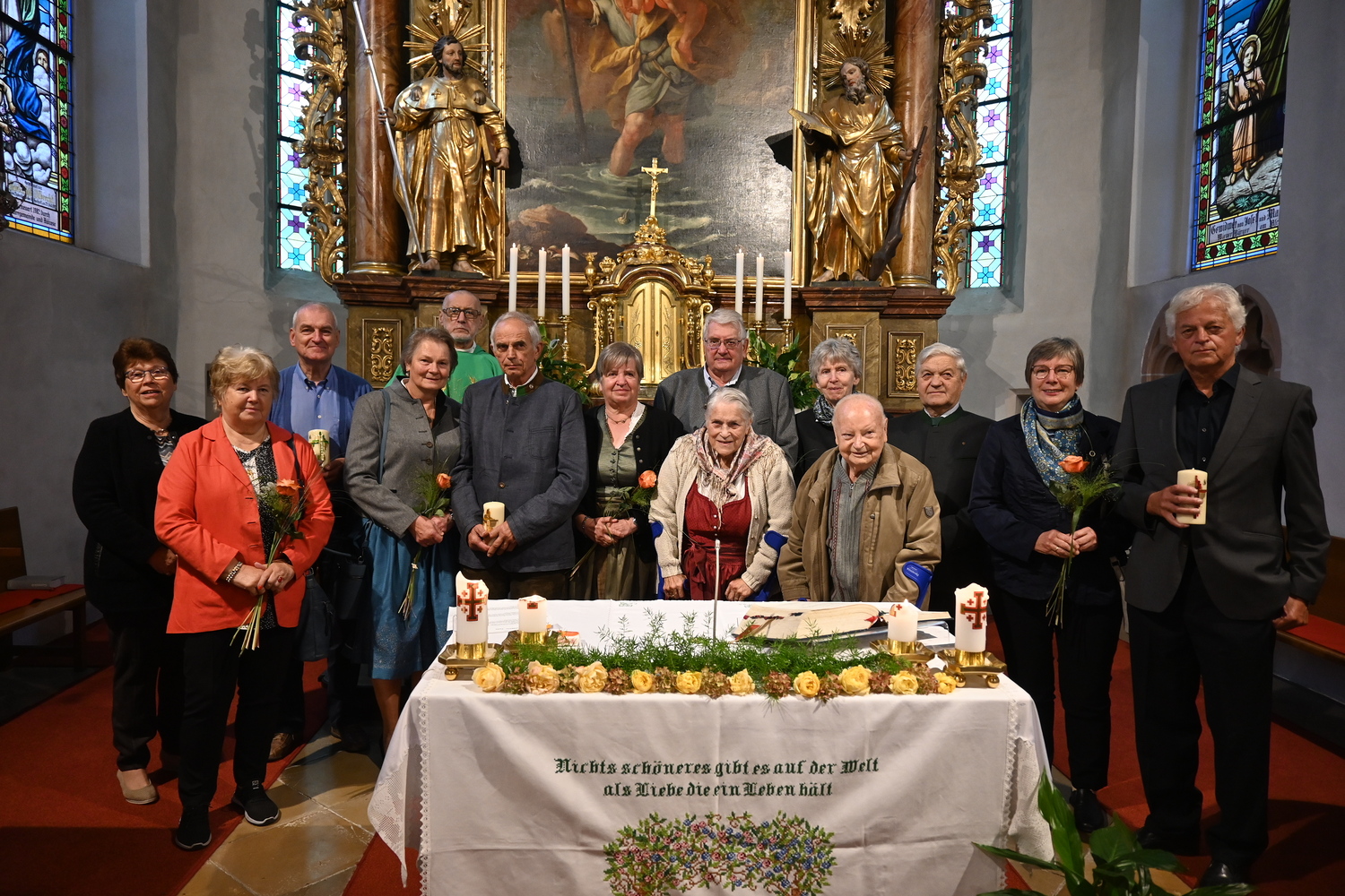 Für die sechs Jubalpaare Ingrid und Erich Kurz (55 Jahre - Platinhochzeit), Hermine und Josef Breitenecker (50 Jahre - Goldene Hochzeit), Eva und Alois Priesching (55 Jahre), Eva und Franz Wagner (55 Jahre), Therese und Johann Breitenecker (40 Jahre - Rubinhochzeit) sowie Elfriede und Josef Schlegl (65 Jahre - Eiserne Hochzeit) gab es eine ganz besondere Messfeier mit dem frisch genesenen Mag. Wieslaw Tracz. Musikalisch wurden die Feierlichkeiten von der Singgruppe St. Christophen unter der Leitung von Gerlinde Vorlaufer.