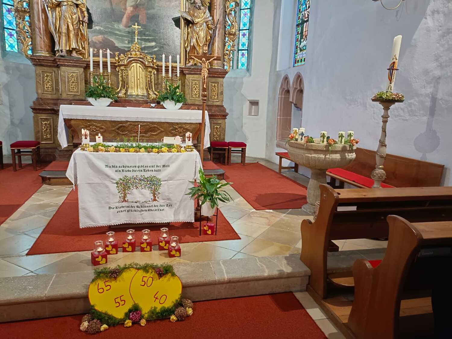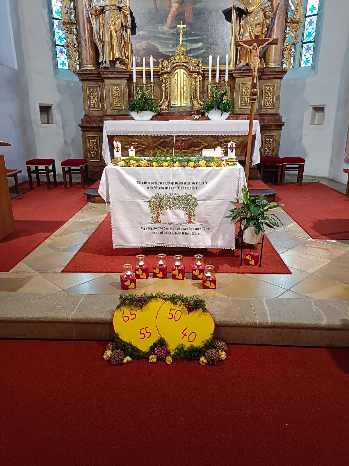 „Nichts schöneres gibt es auf der Welt als Liebe, die ein Leben hält“, hatte Marianne Bointner auf das prächtige Altartuch gestickt, das am Sonntag für die Ehejubilarsfeier in der Pfarrkirche St. Christophen aufgelegt wurde.