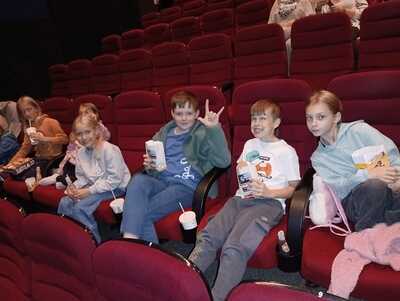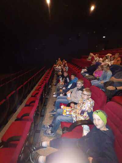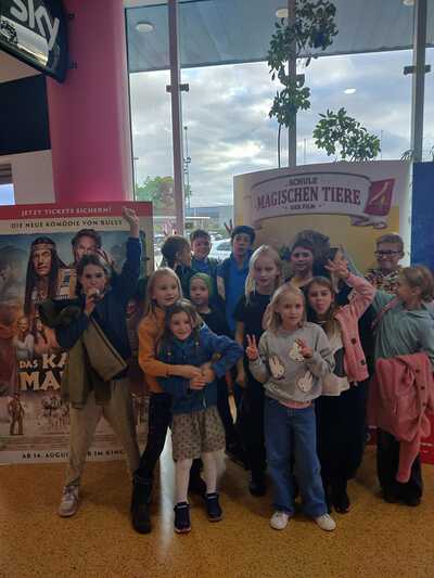 Nach dem Erntedankgottesdienst ging es für die 14 Ministranten in das Kino St. Pölten, wo mittlerweile eine ganze Sitzreihe für die Ministranten gebraucht wird. Bei Popcorn und Getränken hatten die Kinder sichtlich Spaß am Film "Schule der magischen Tiere!"