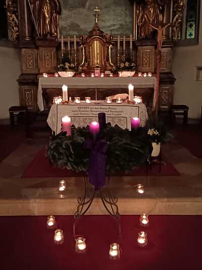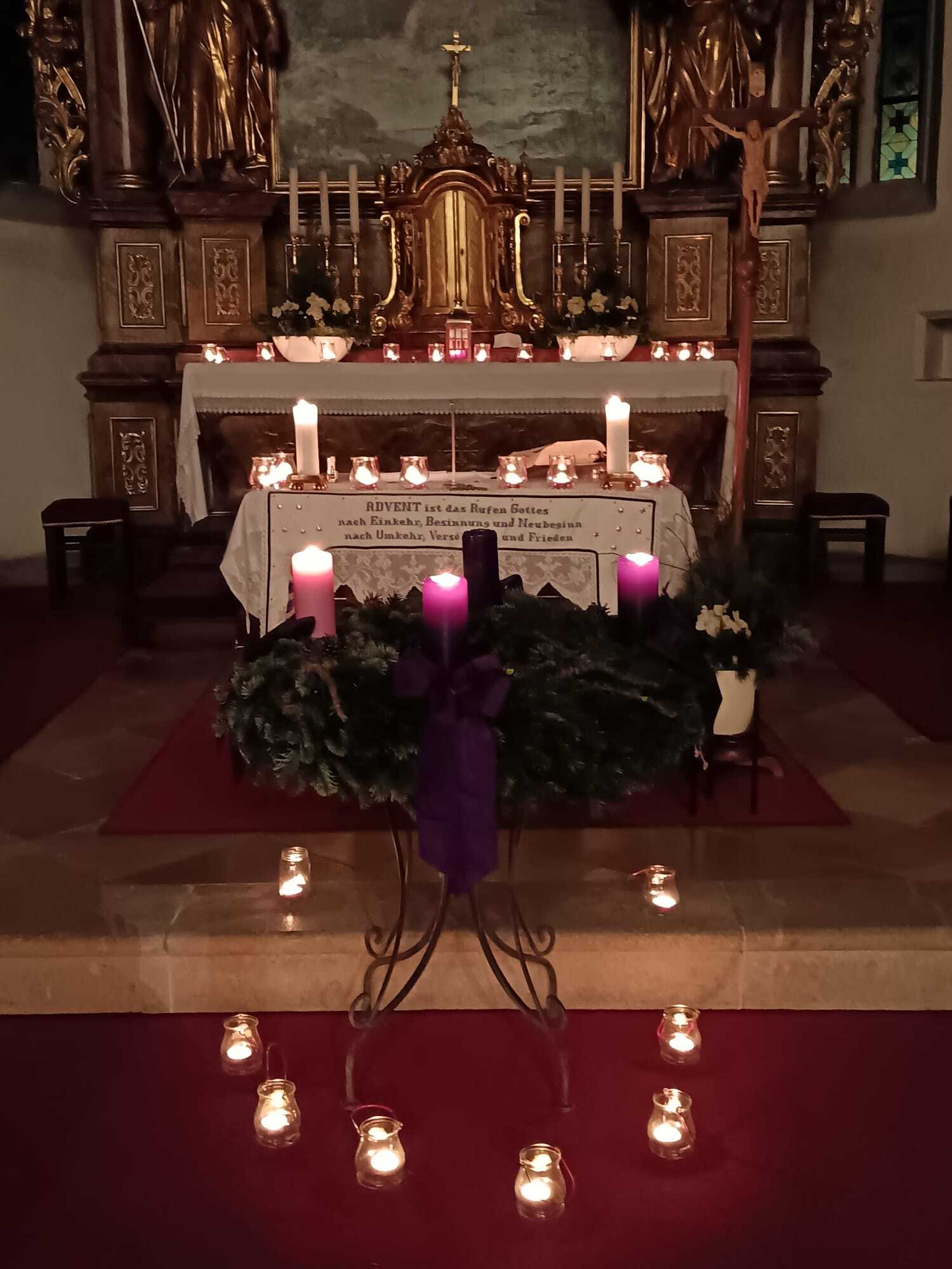 Kälte und Finsternis trotzten 34 Personen (davon 1 Kind) um 6 Uhr in der Früh. Feierlich bei Kerzenschein zelebrierte Pfarrer Tracz die Messe in der Pfarrkirche St. Christophen. Belohnt wurden die Kirchbesucher durch das Frühstück im Pfarrheim Miteinander. Besonderer Dank gilt Ulrike Schweiger für die Organisation.