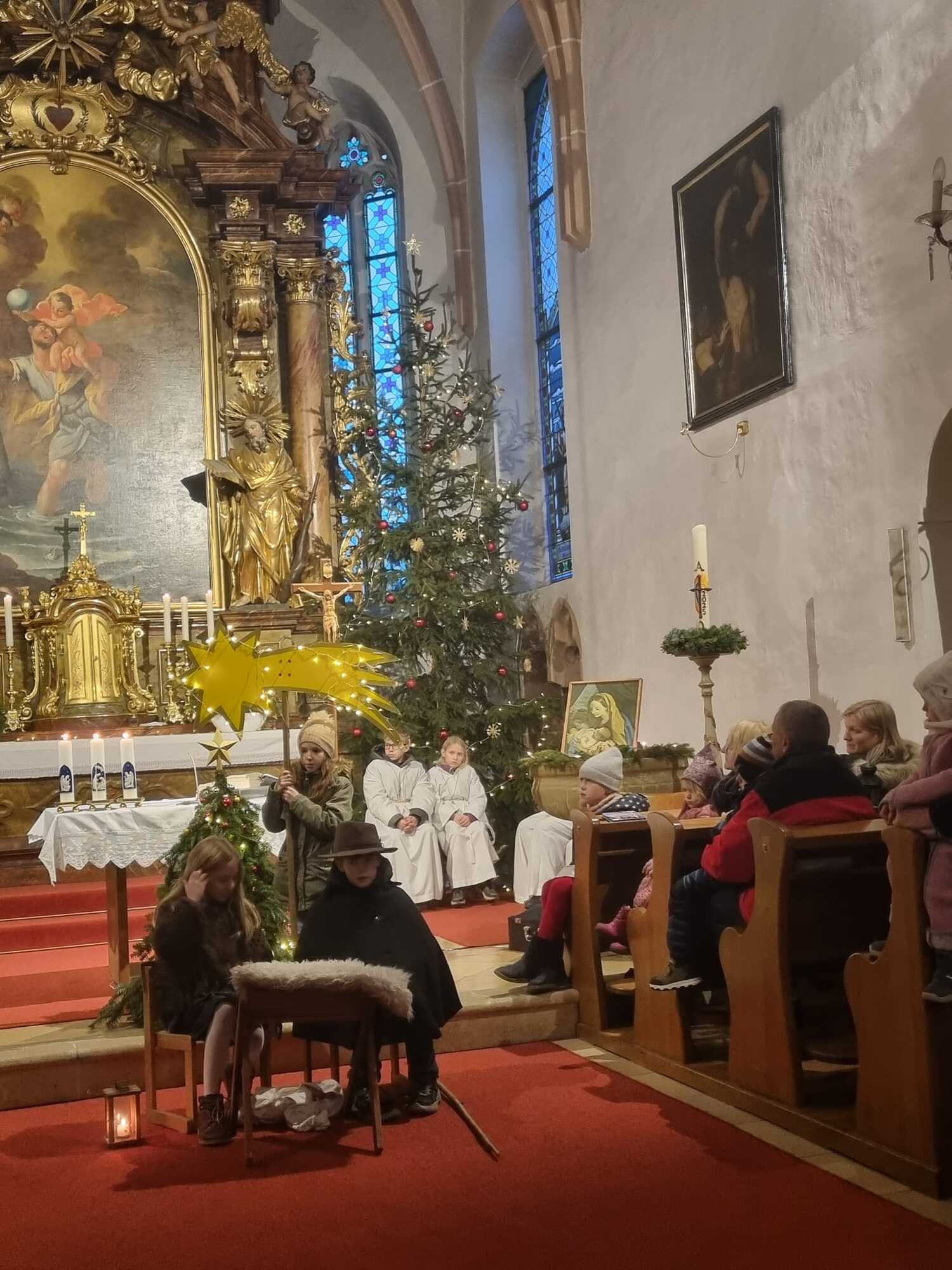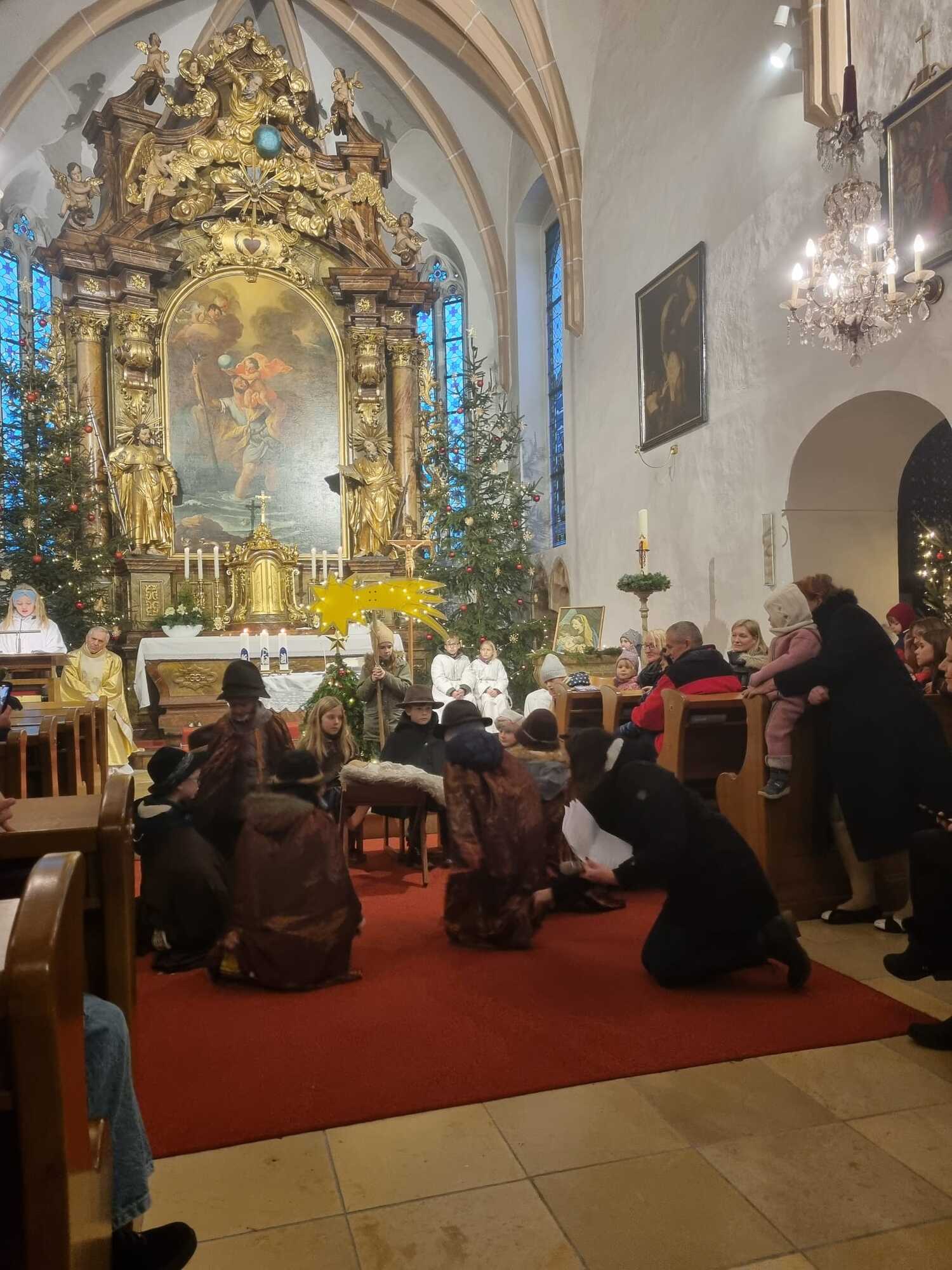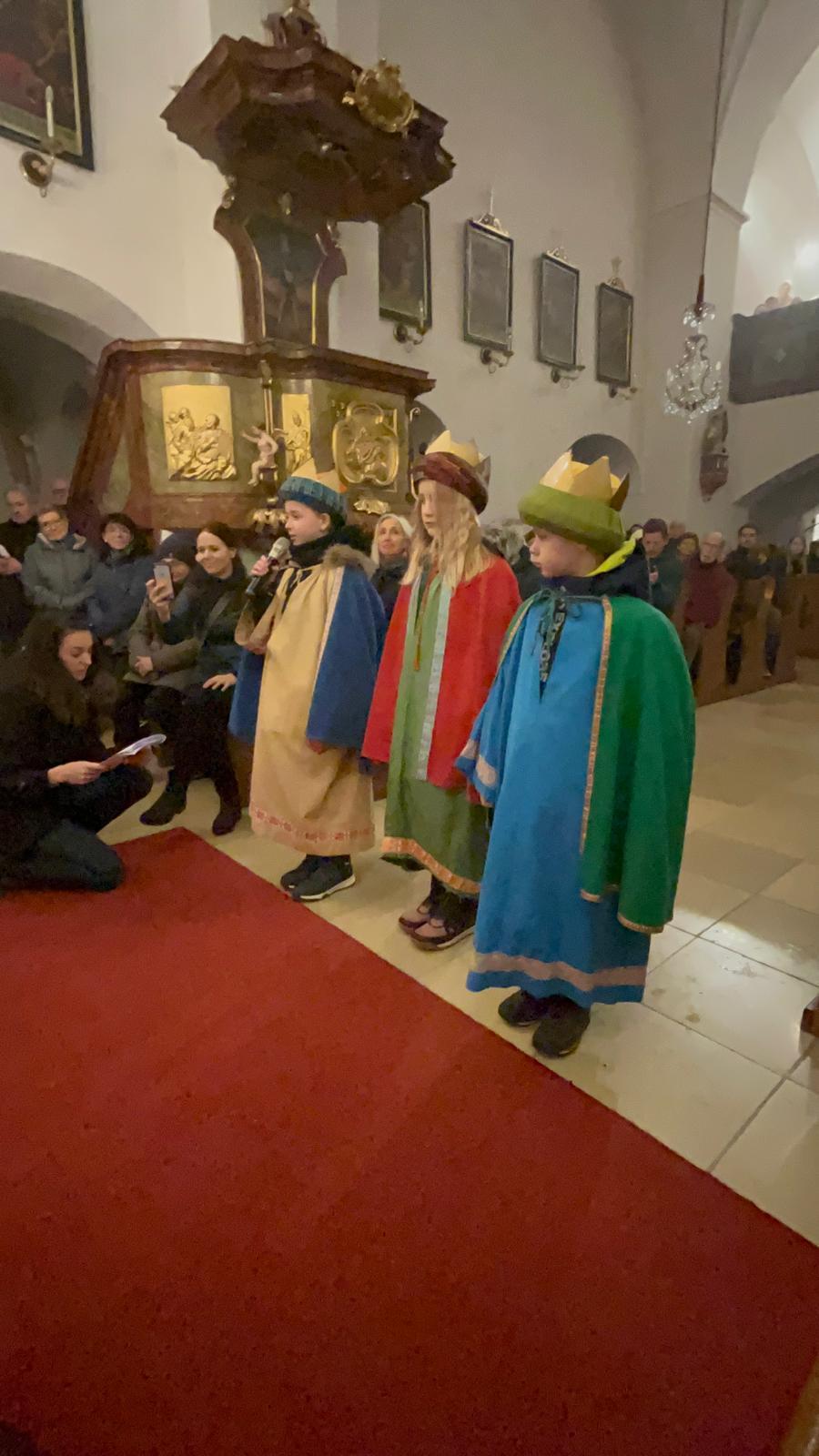 Pfarrer Mag. Jackowski zelebrierte gemeinsam mit Mag. Tracz die Kindermette. Weihrauch durfte an diesen Tag auch nicht fehlen und so durften die Ministranten das erste Mal das Weihrauchfässchen bedienen. Die vielen Kinderaugen leuchteten beim Krippenspiel. Musikalisch umrahmt wurde die Messe durch Elisabeth Herbst-Kropatschek (Klavier), Jutta Breitenecker und andere.