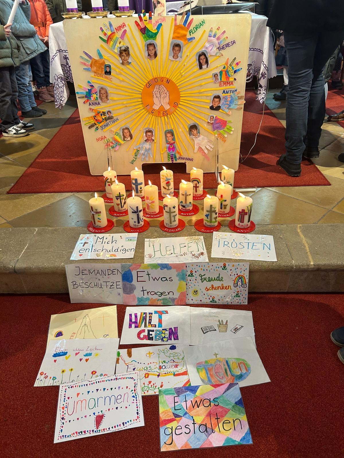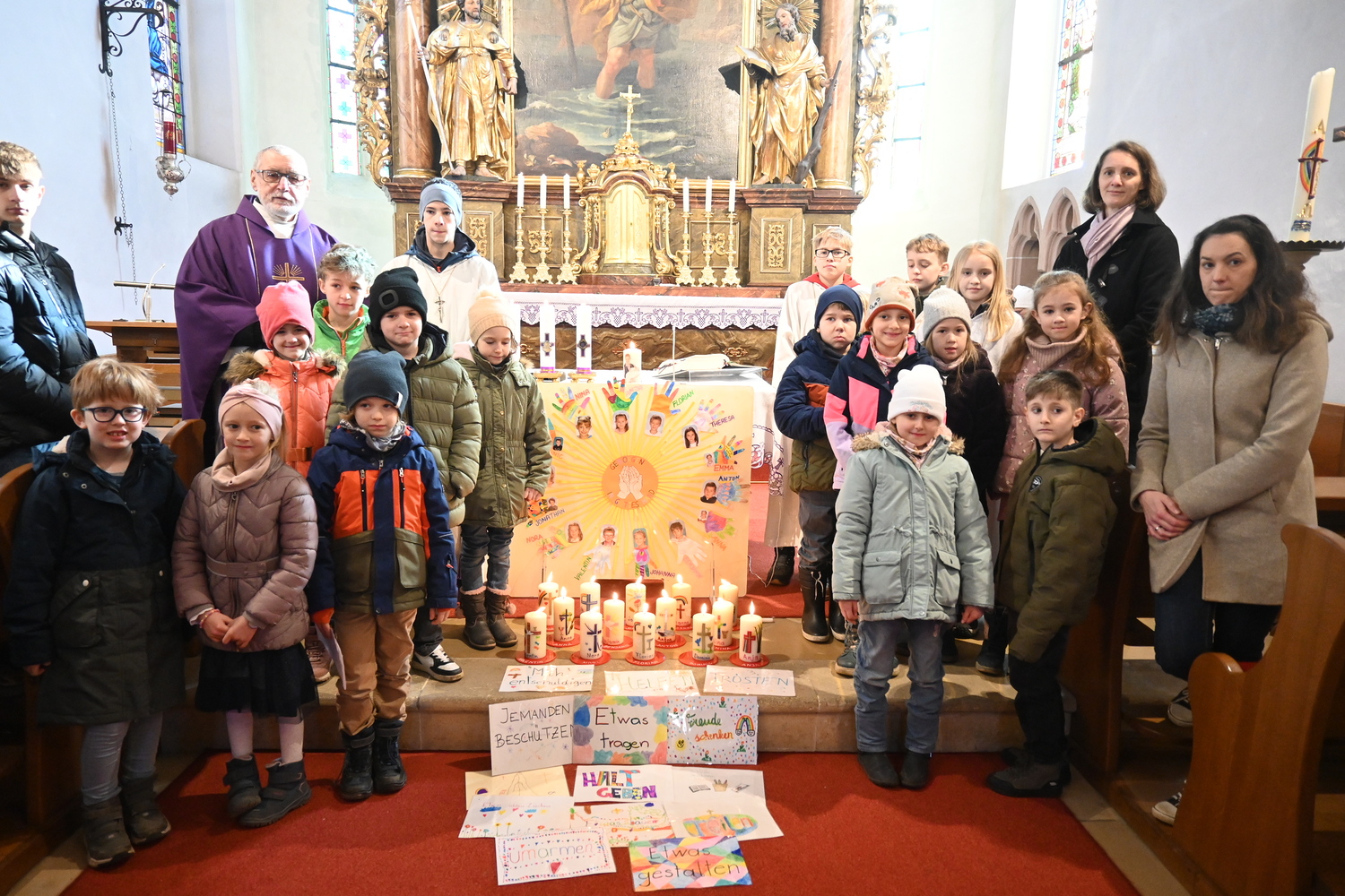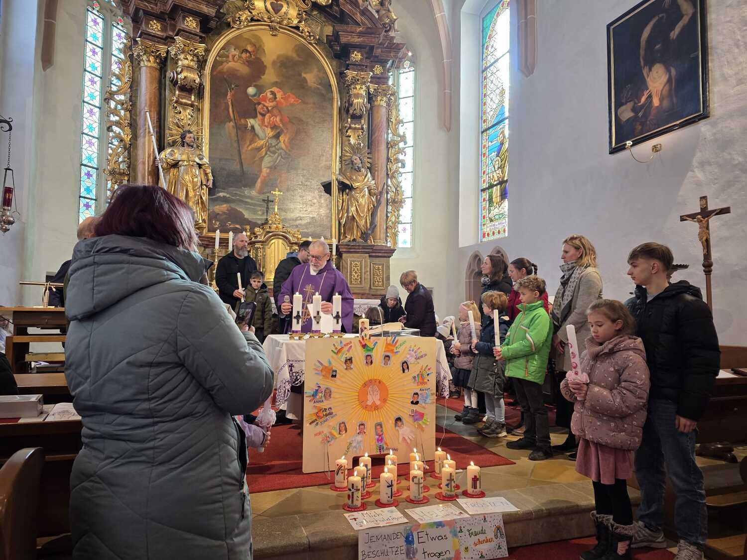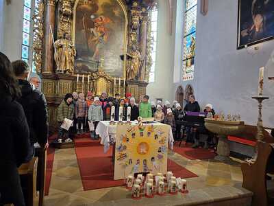 Mit viel Engagement, Freude und Witz führt Pfarrer Tracz die Gottesdienstbesucher und vor allem die Kinder durch die Messe. Nach der Vorstellung der Kinder, wo sie zeigen durften was sie alles mit ihren Händen schaffen können und warum es so wichtig ist in Gottes Hand geborgen zu sein, erneuerten die Kinder gemeinsam mit ihren Taufpaten ihr Taufversprechen. Mit viel Applaus für den Kinderchor endete die Messe mit leuchtenden aber auch müden Kinderaugen nach dem etwas längeren Gottesdienst. Frische Kraft wurde beim anschließenden Pfarrcafe (Gruppe Rothenbuch) und Fastensuppenessen (organisiert durch die Ministranten) getankt.