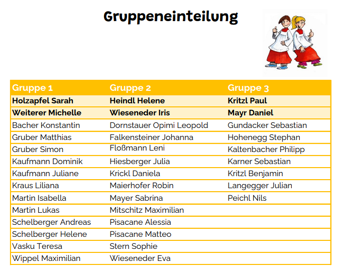 Oberministranten sind aber auch für die Betreuer und für unseren Hr. Pfarrer der erste Ansprechpartner wenn es um Einteilungen oder Entscheidungen für Events und ähnliches geht.