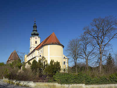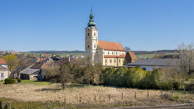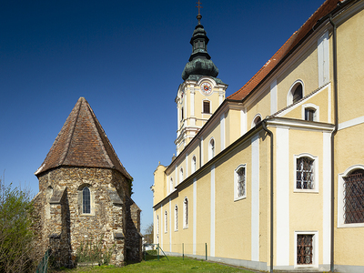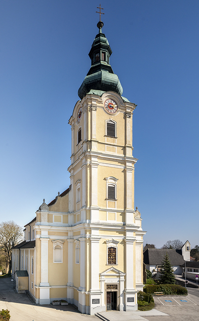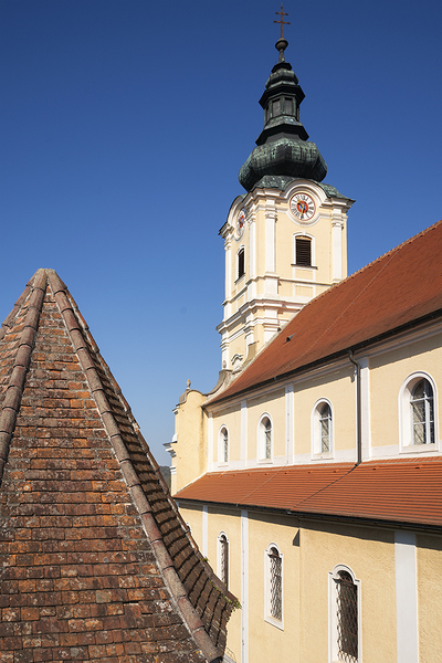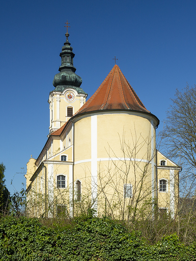 der am Barockbau des benachtbarten Stiftes Melk mitwirkte, den Hochaltar mit vier Seitenaltären.