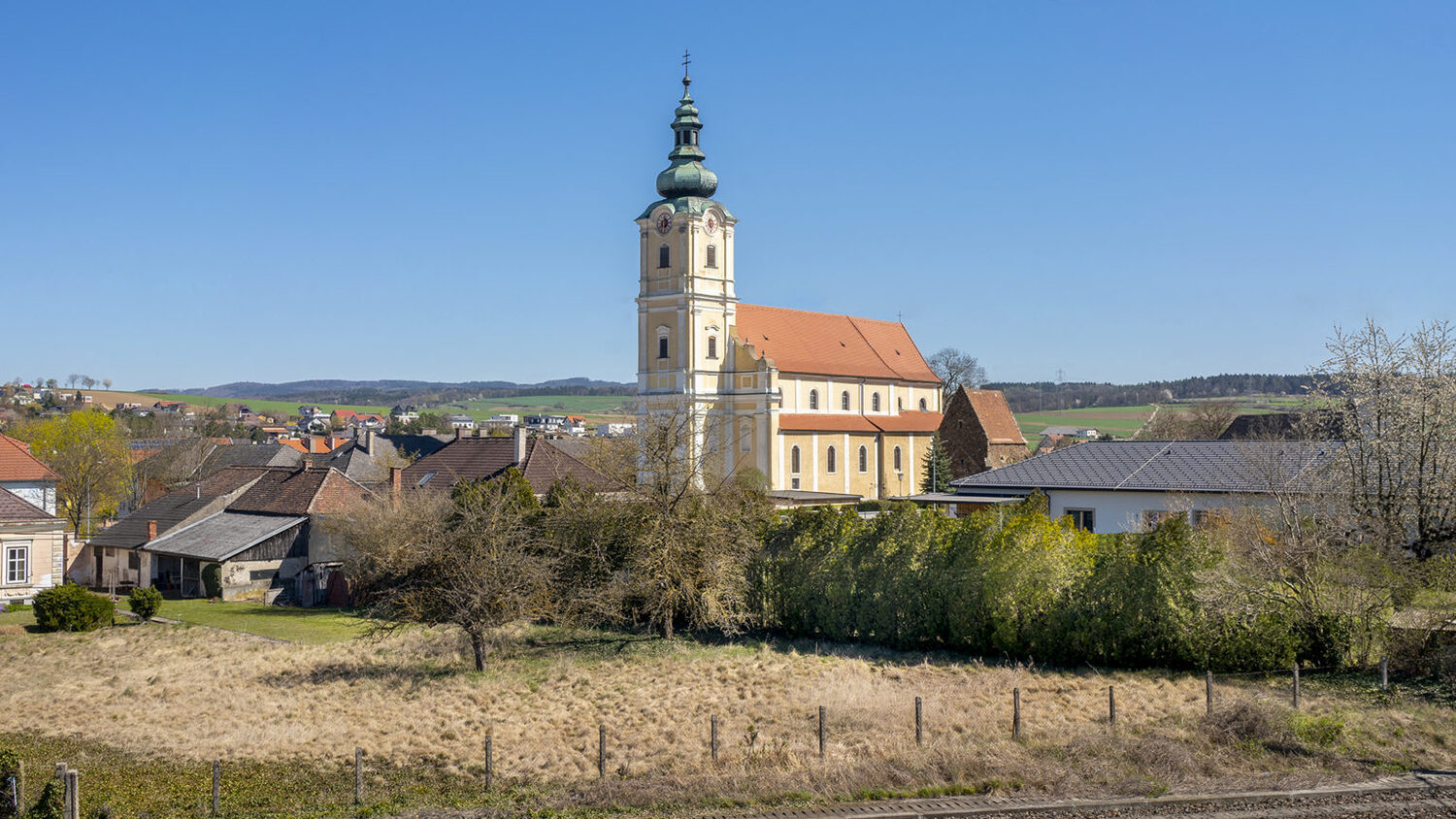 Von der ersten hier erbauten und geweihten Pfarrkirche ist nichts mehr erhalten.
