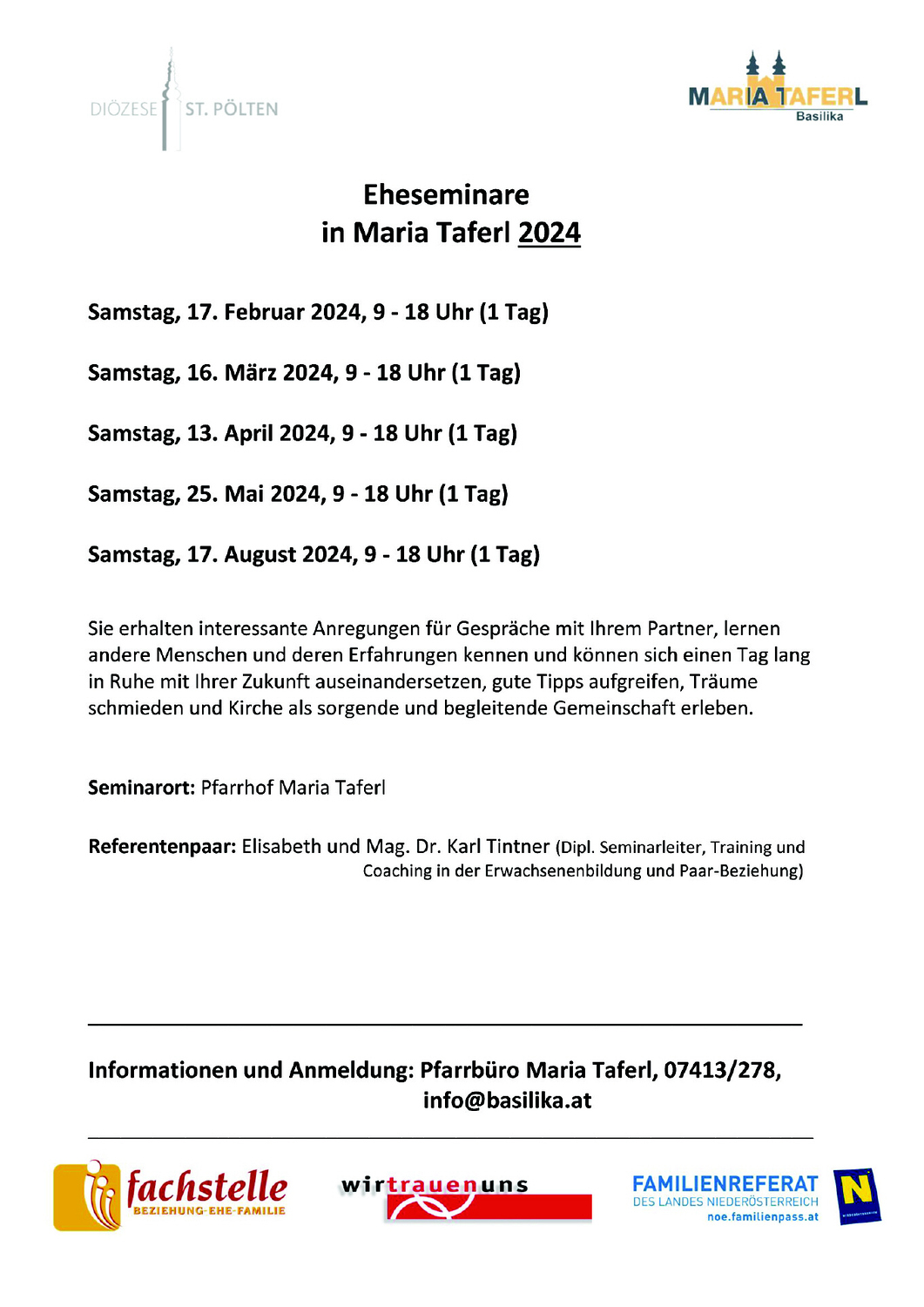 Anmeldungen sind ab sofort im Pfarrbüro möglich. 07413/278 info@basilika.at