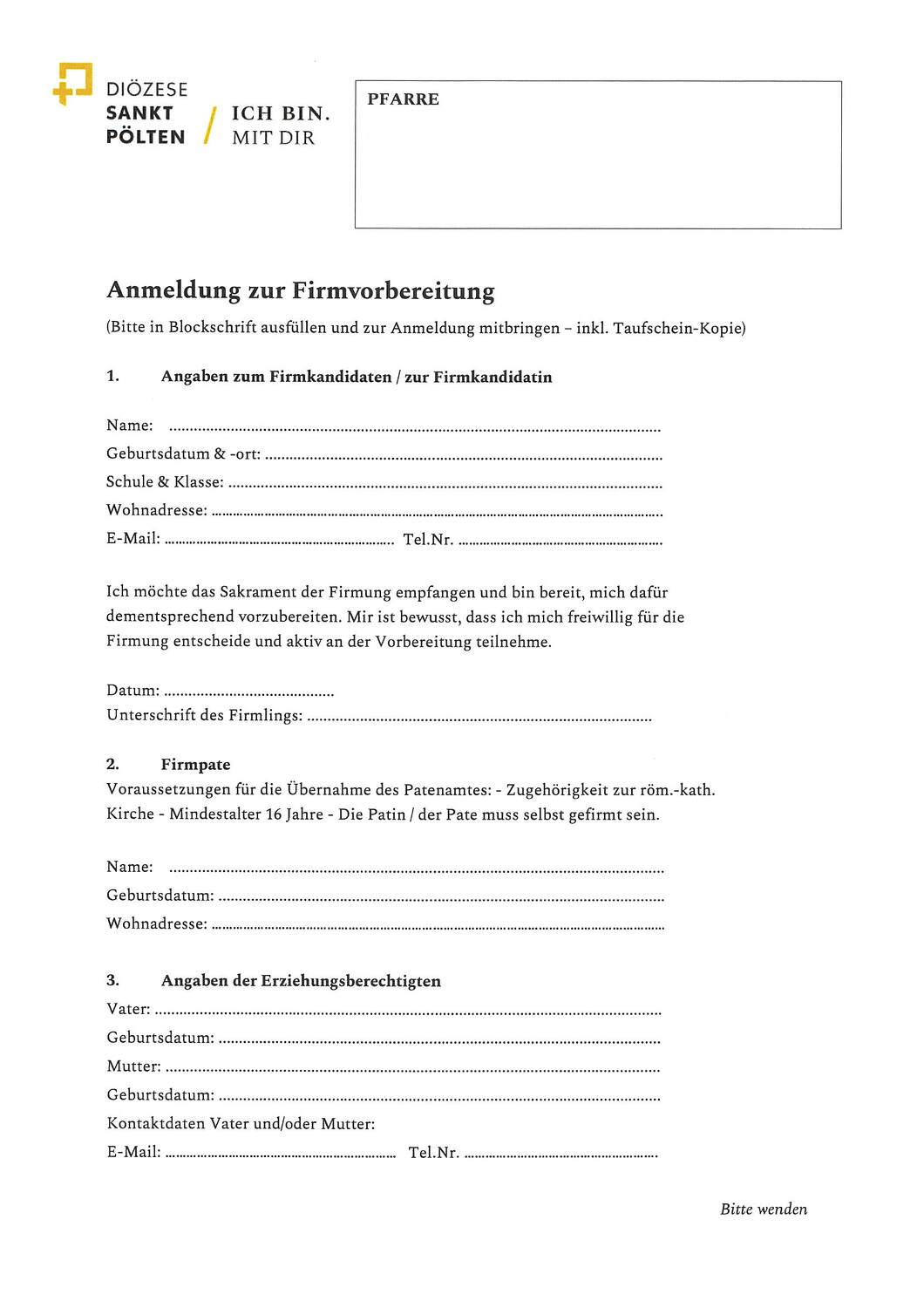Die Anmeldung dafür wird von August bis Oktober möglich sein. Bitte bringen Sie dafür das ausgefüllte Anmeldeformular in die Pfarrkanzlei Langenrohr.