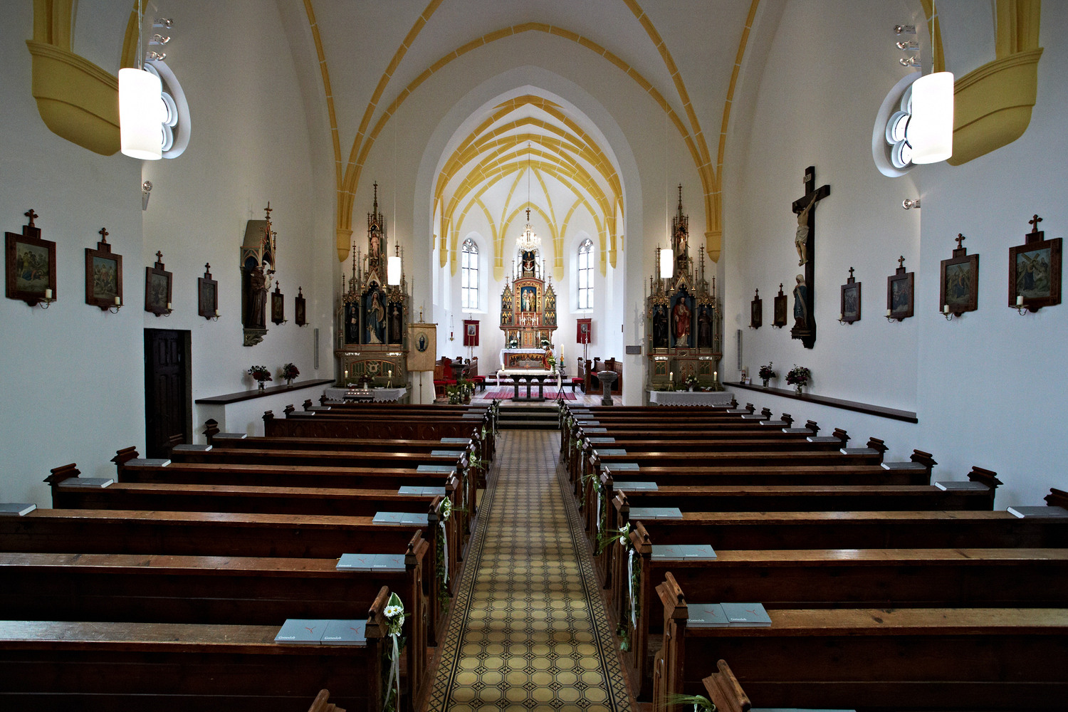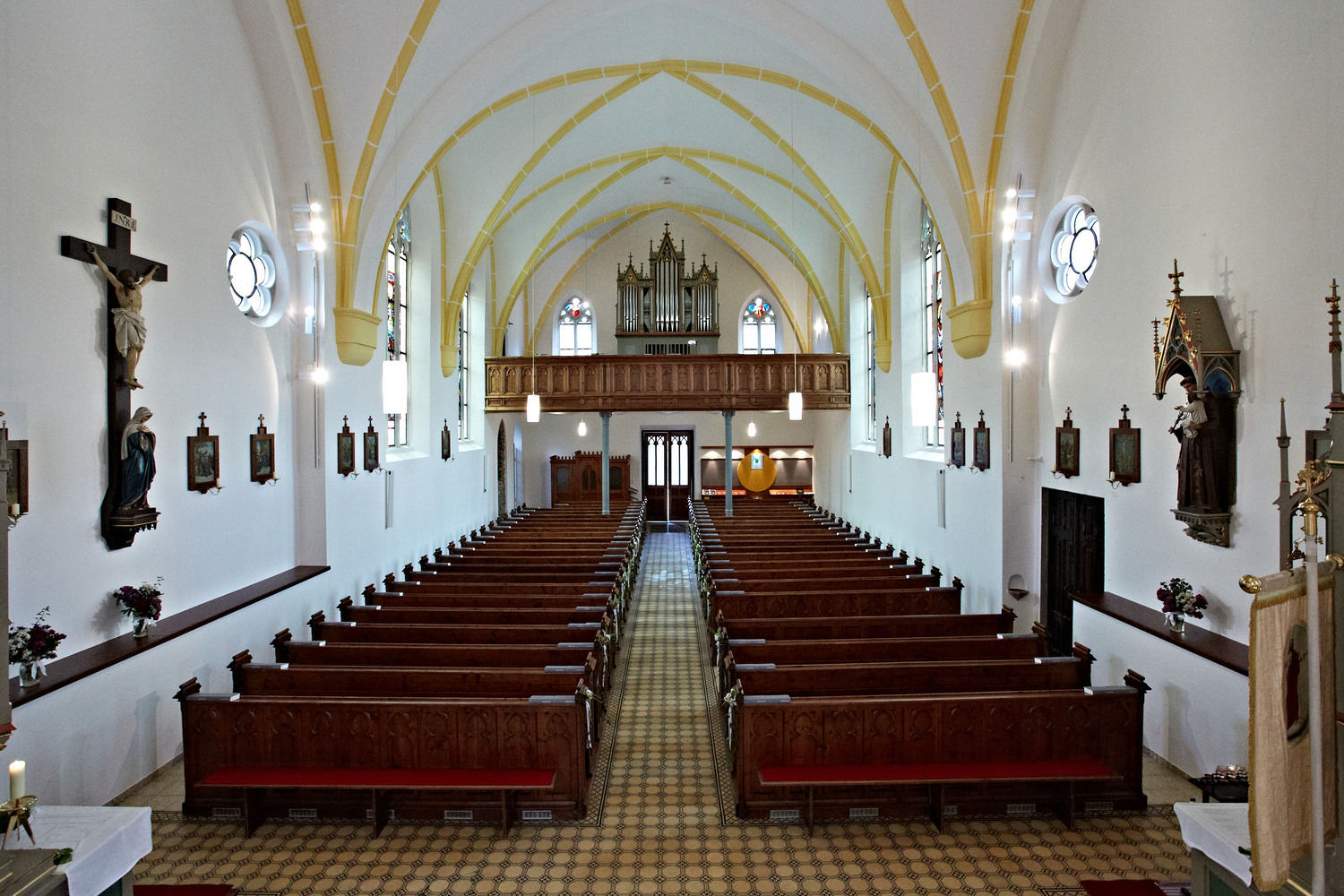 mit eingezogenem kreuzrippengewölbtem Chor,