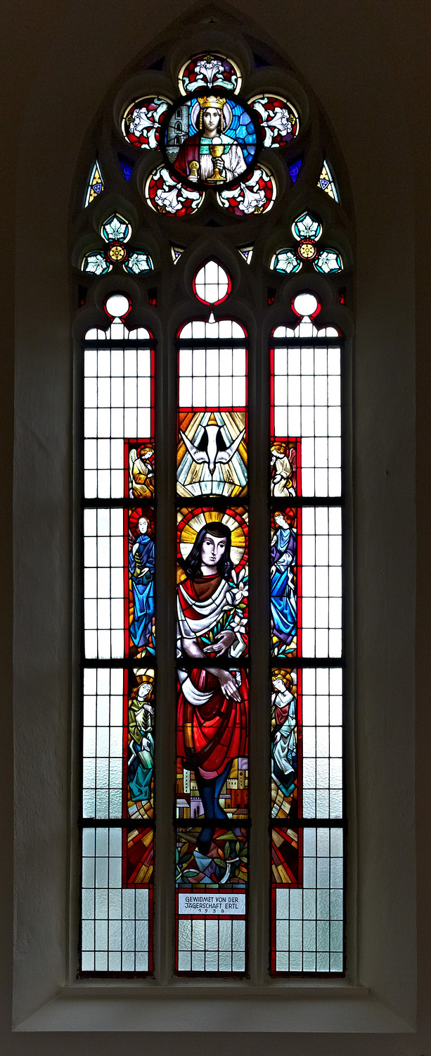 (rechts): Hl Antonia von P. (Märtyrin im 3. Jh.), Hl. Barbara (Gedenktag 4.Dez., in den Turm gesperrt, 306 als Märtyrin gestorben, Nothelferin), Hl. Justina (Gedenktag 7. Okt., um 304 als Märtyrin gestorben), Hl. Katharina von Alexandrien (Gedenktag 25. Nov., sollte gerädert werden, aber Rad zerbrach, 307 enthauptet, Nothelfern)