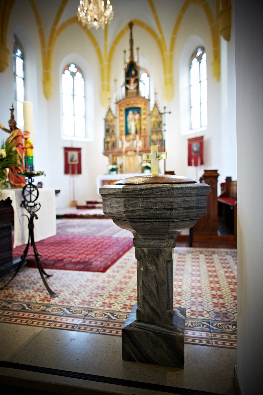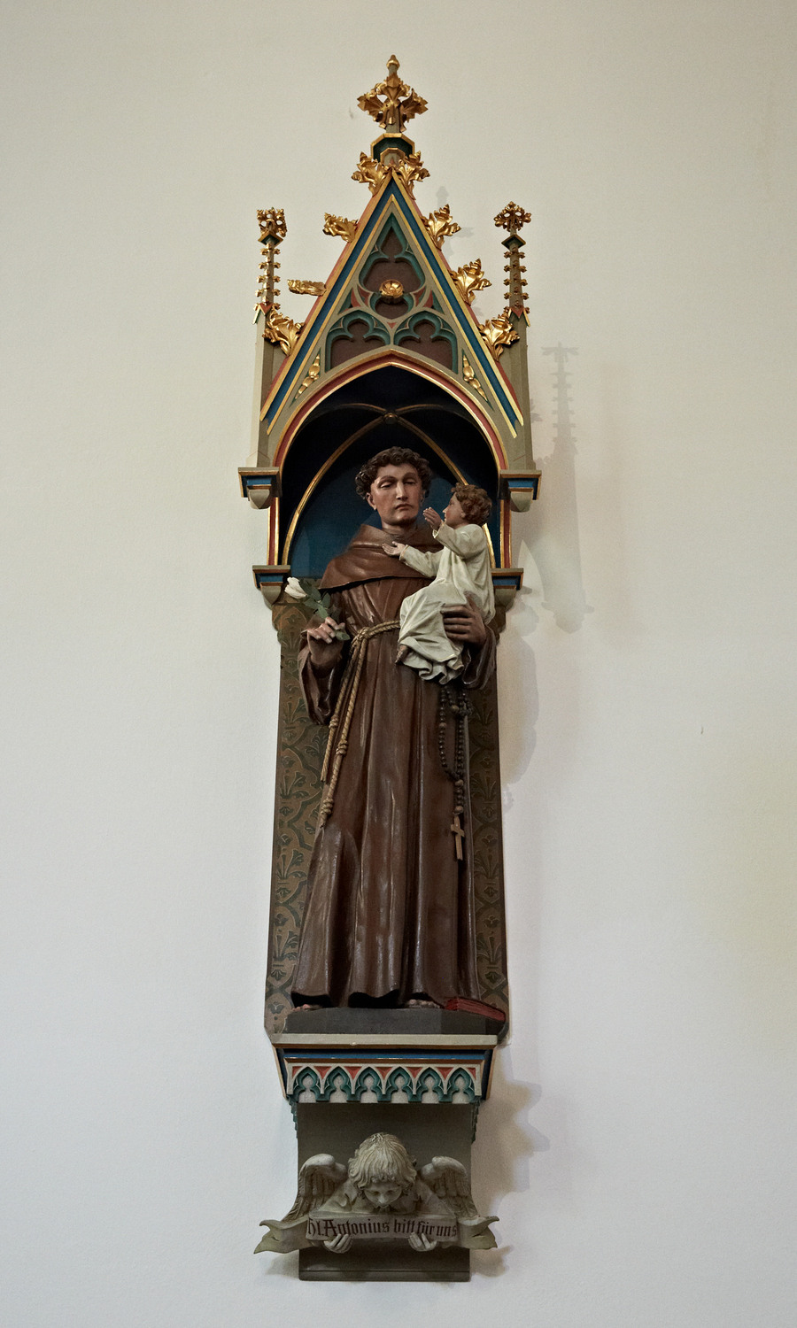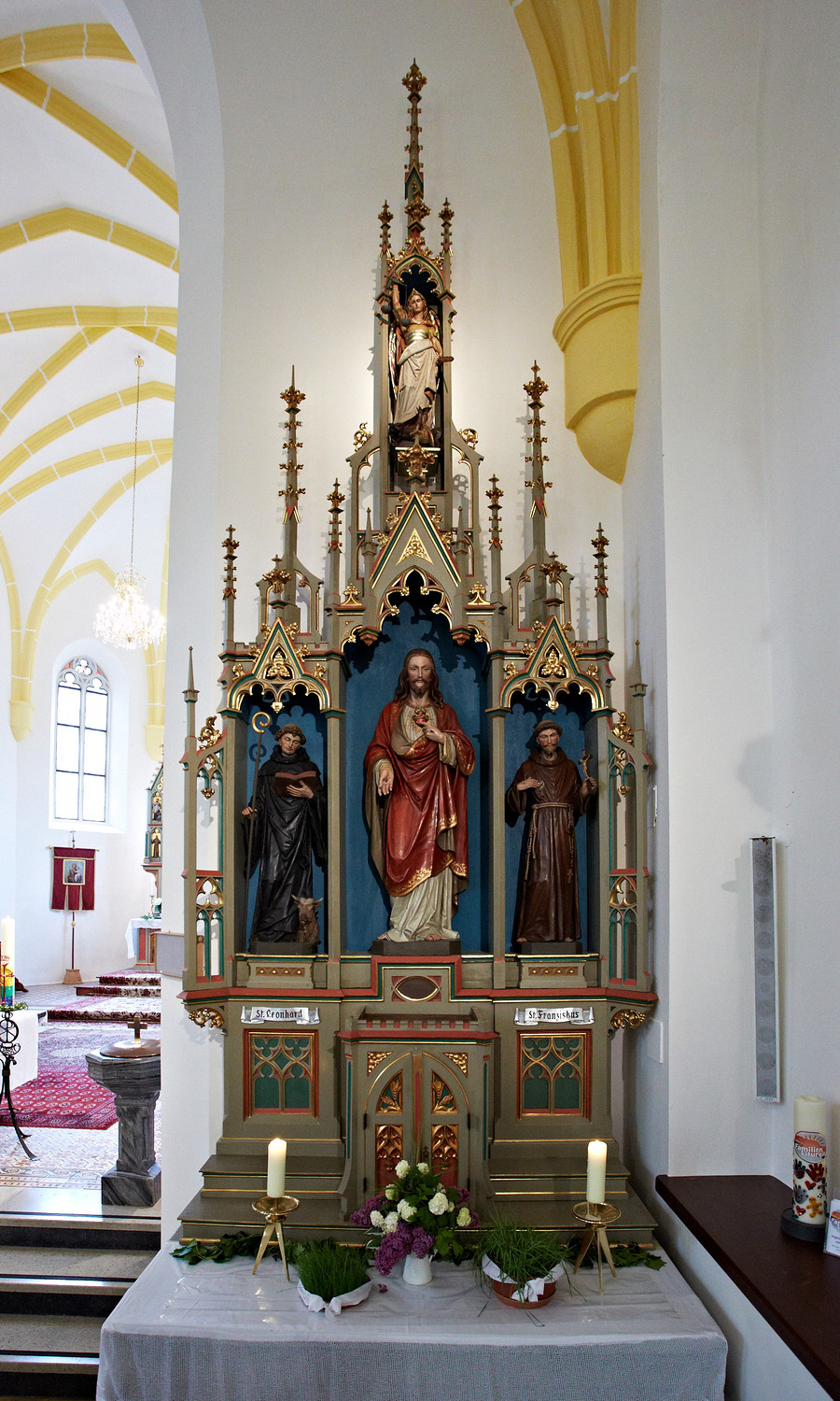 (links): Hl. Franz Xaver (Gedenktag 3. Dez., 16. Jh., Jesuit, Begründer der Mission im fernen Osten, Apostel Indiens und Japans), Hl. Johann Nepomuk (Gedenktag 20. März, 14. Jh., als Märtyrer des Beichtgeheimnisses in die Moldau gestoßen), Hl. Franz von Assisi (Gedenktag 4. Okt., 12. Jh), Hl. Karl Borromäus (Gedenktag 4. Nov, 16. Jh., Erzbischof von Mailand, bei Betreuung der Pestkranken angesteckt);