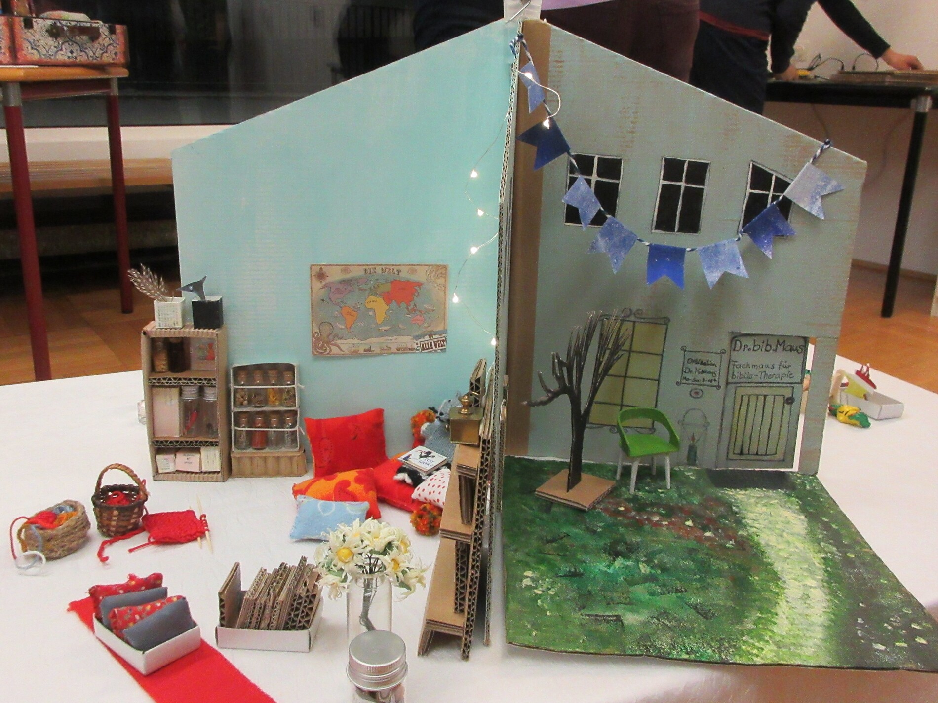 Neue Sach- und Kreativbücher für Vier- bis Zehnjährige, die allesamt zum Thema „Leserezepte“ passen wurden vorgestellt, danach lud Dr. bib. Maus in seine BiblioPraxis. Es wurden Buchstart-Leserezepte Projekte entwickelt und eigene kleine Bücherwelten geschaffen.