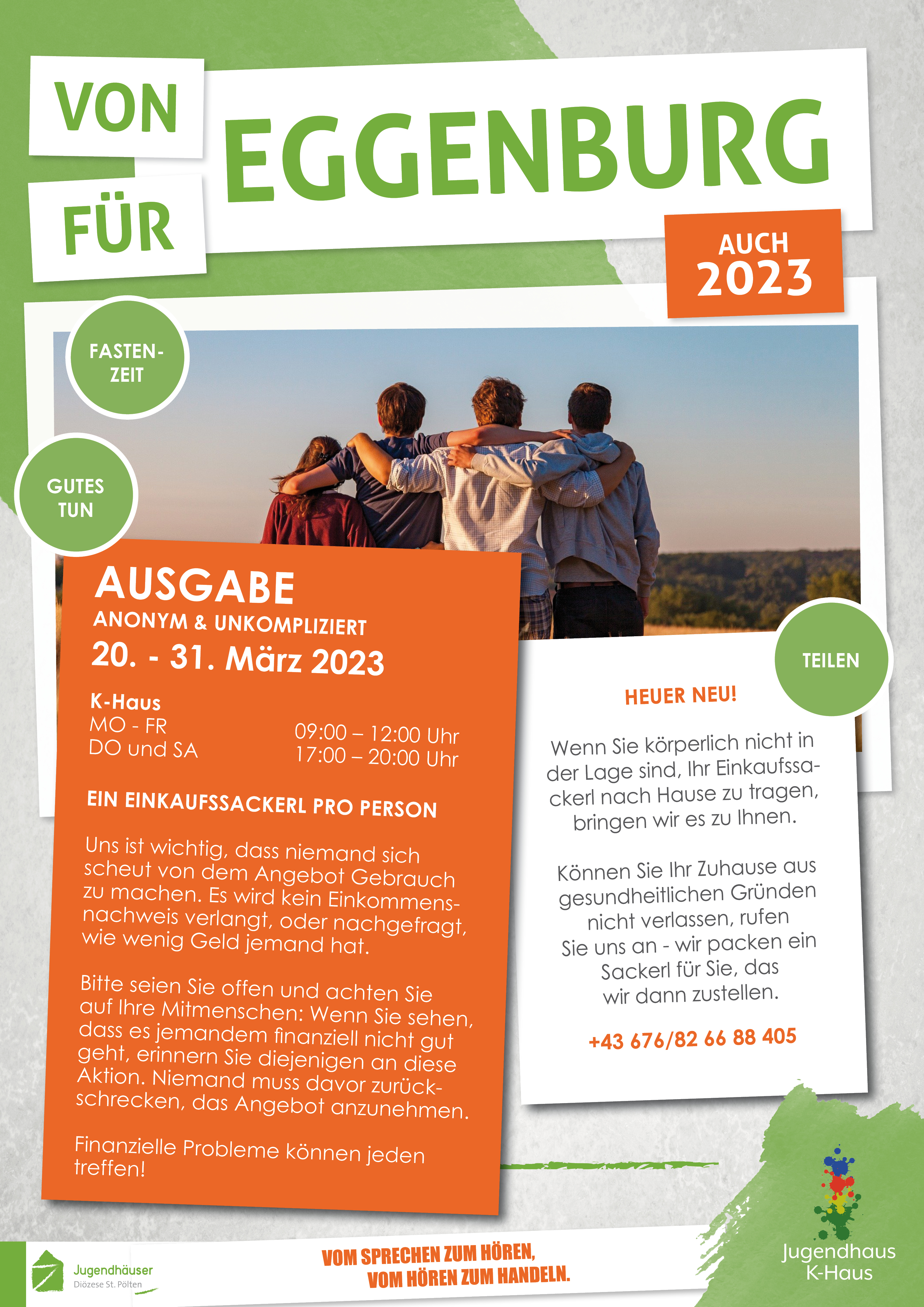 „Sollten Sie vielleicht selber Menschen in Ihrem Umfeld kennen, denen unsere Aktion Hilfe sein könnte, so bitten wir, diese auf „Von Eggenburg – Für Eggenburg“ aufmerksam zu machen“, bittet das K-Haus-Team die Eggenburgerinnen und Eggenburger um rege Mithilfe bei der Bekanntmachung ihrer Fastenaktion.