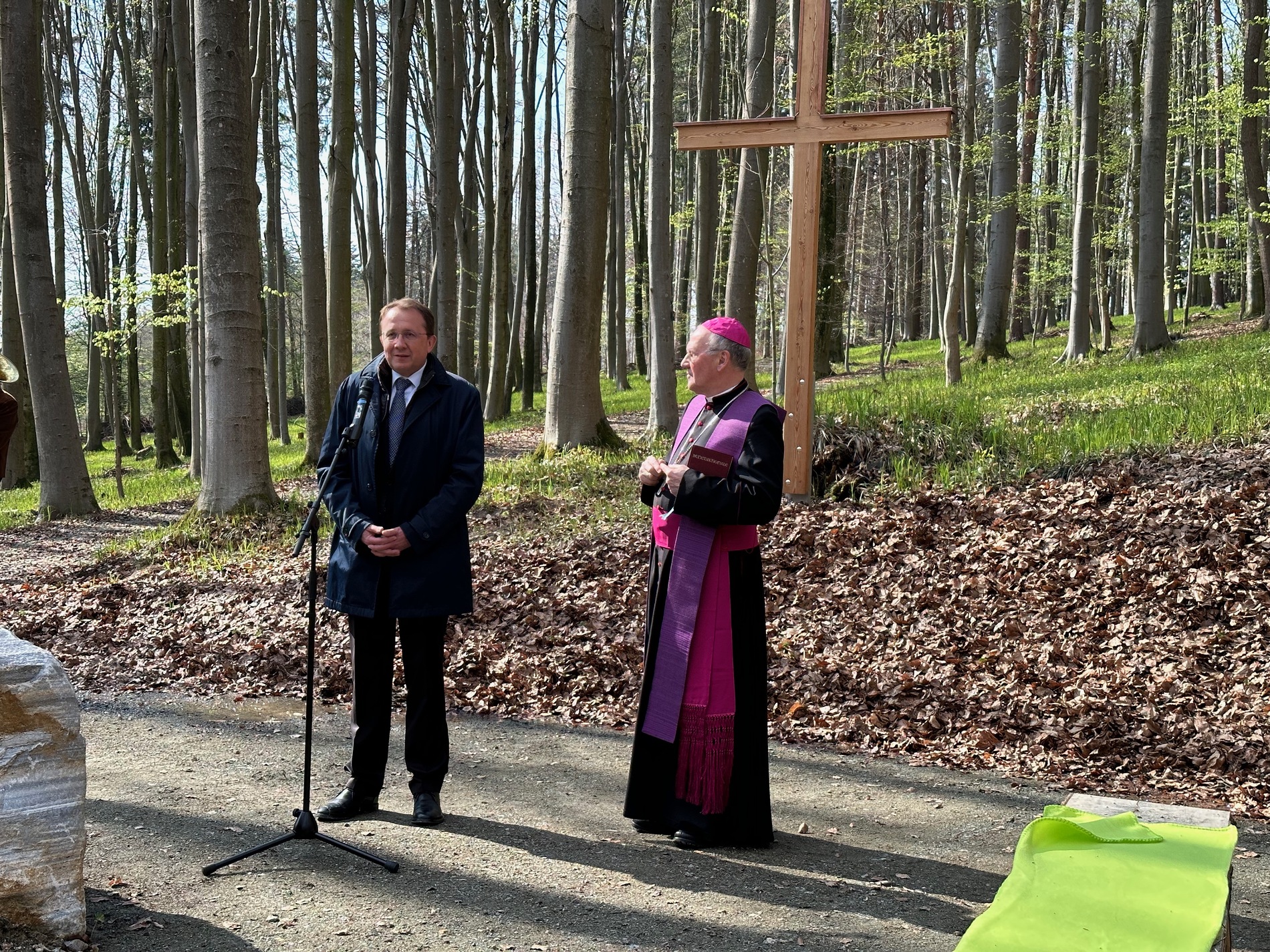 „Der Klosterwald ist ein Ort der Ruhe und Einkehr, an dem die Natur uns an die Schönheit und Wunder Gottes erinnert. Menschen suchen einen Ort, wo sie ihre Angehörigen bestatten können. Da ist einerseits der Friedhof, andererseits auch die Natur ein Ort, wo Menschen ihre letzte Ruhe finden. Ein öffentlicher Ort, wie dieser Wald, wo Menschen kommen um zu trauern und um die Erinnerung wach zu halten. Denn, wenn jemand stirbt, gehört er nicht mehr sich selbst, auch nicht mehr den engsten Angehörigen. Er gehört allen. Und alle sollen die Möglichkeit haben, um den Menschen zu trauern, den sie gekannt haben.“, so Bischof Alois Schwarz.