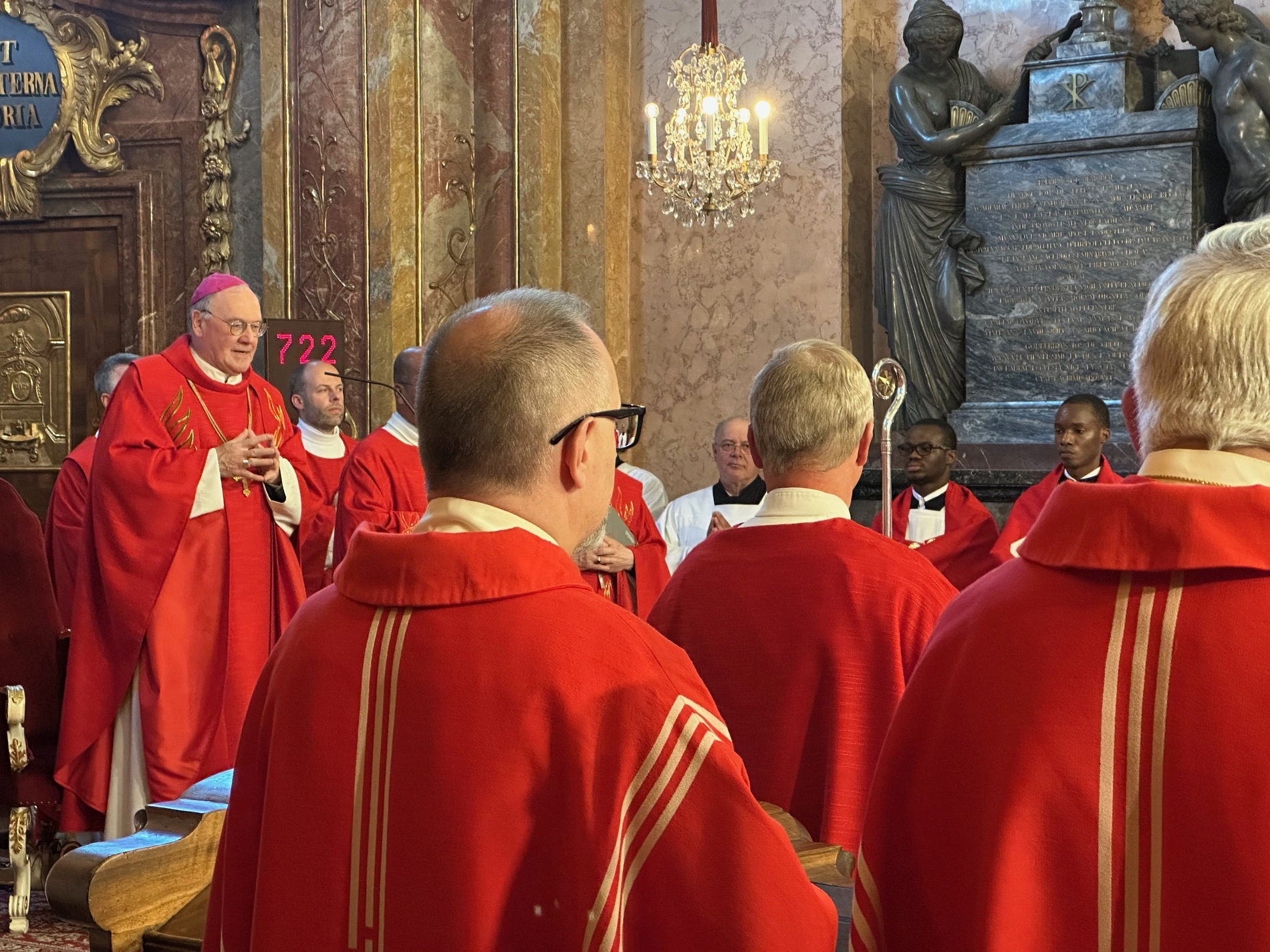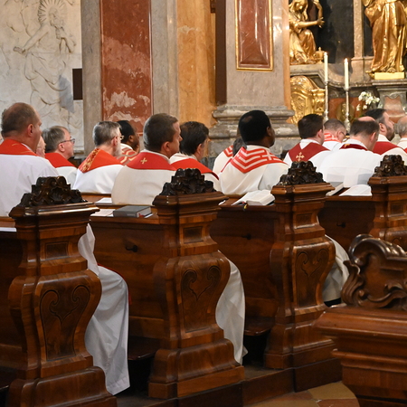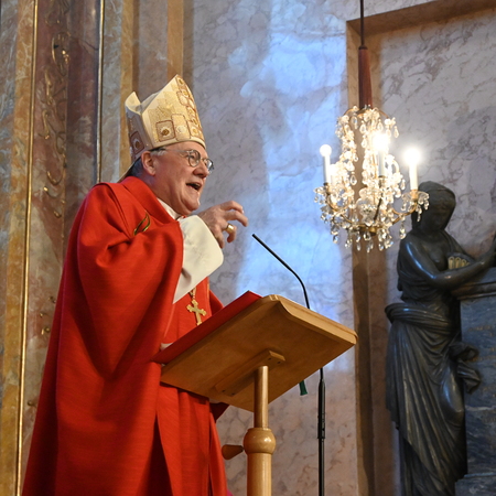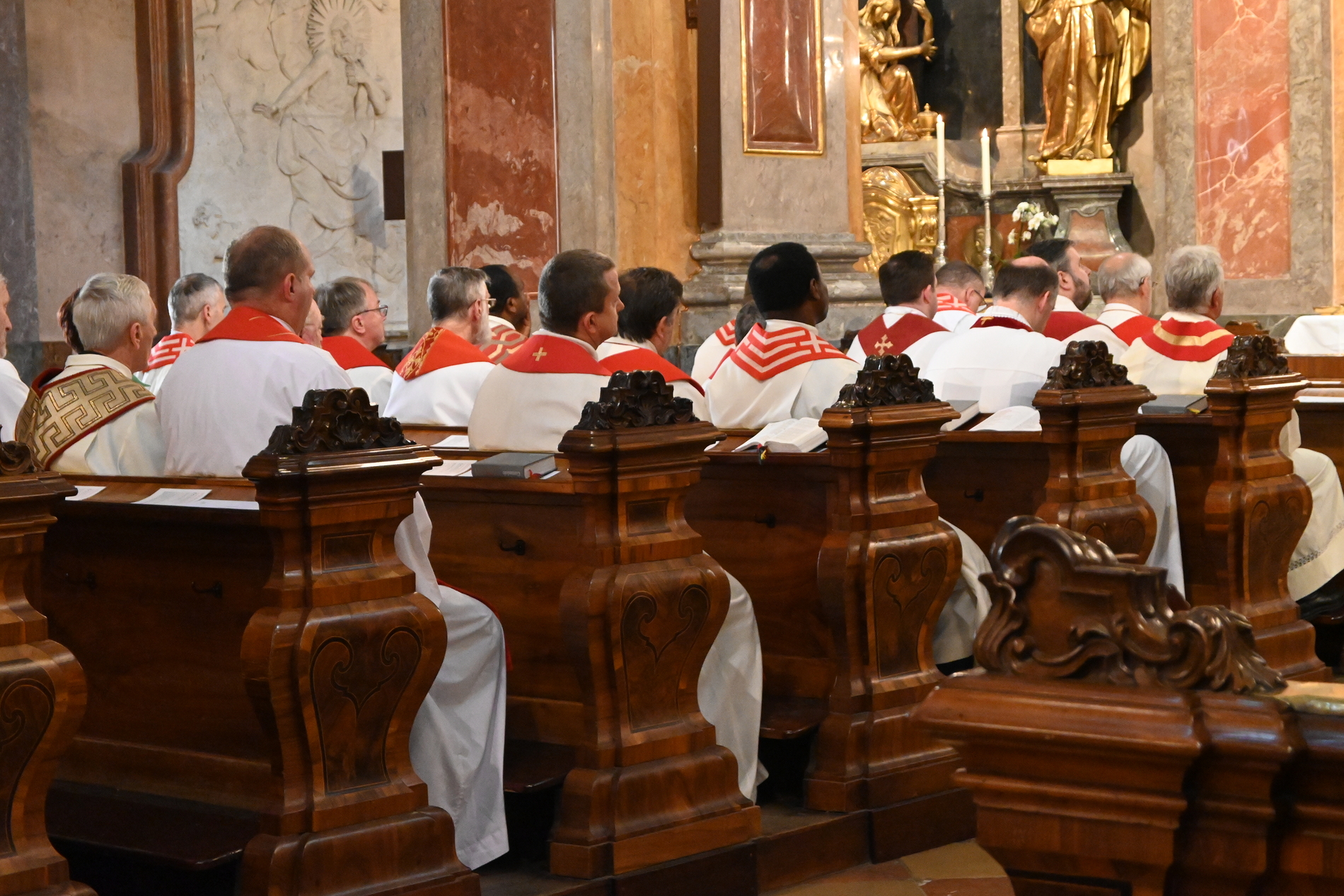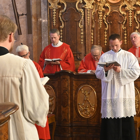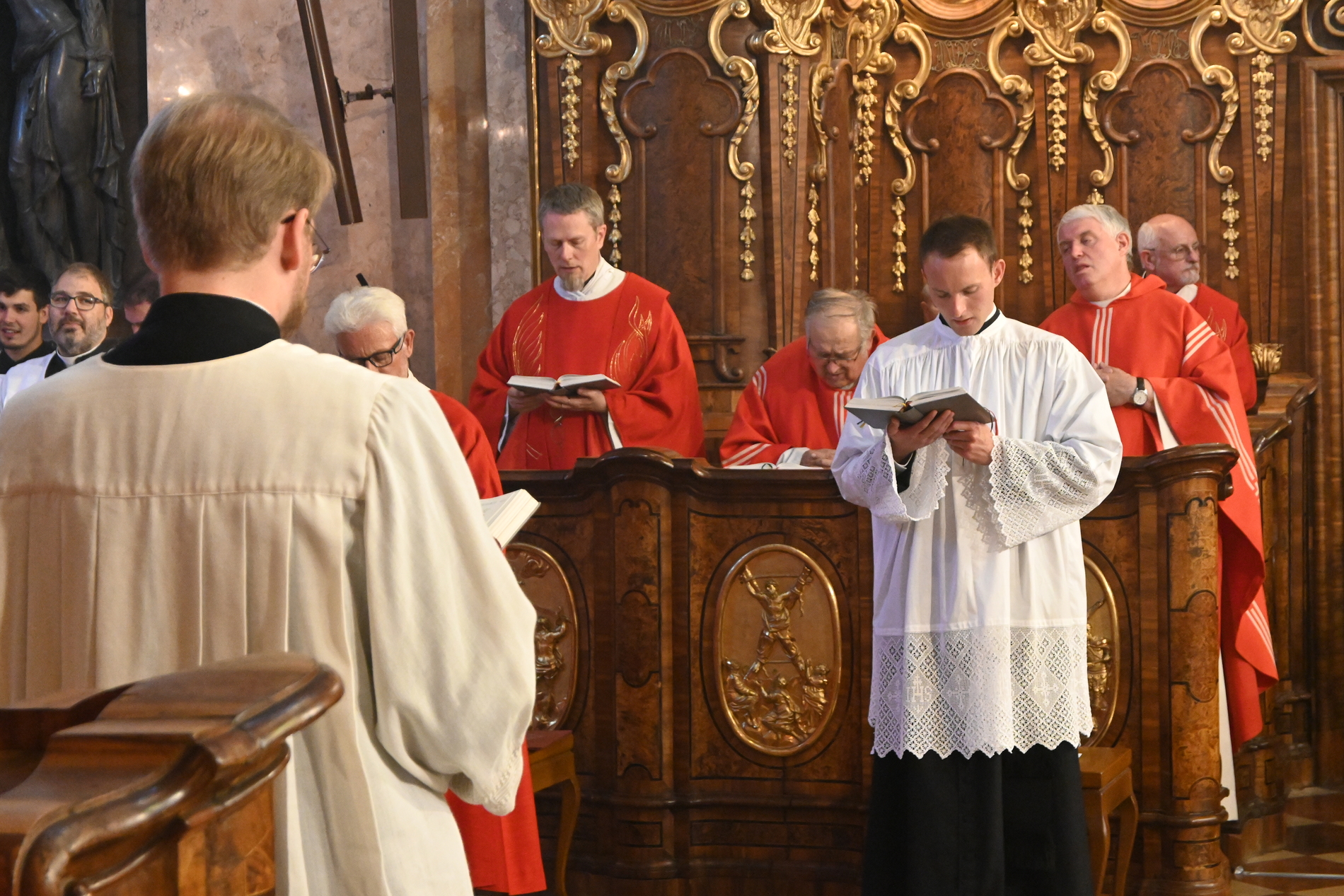 Der Bischof spricht ein Gebet und bittet Gott um die Kraft, dass sich die Kandidaten auf ihr zukünftiges Amt mit ganzem Herzen vorbereiten.