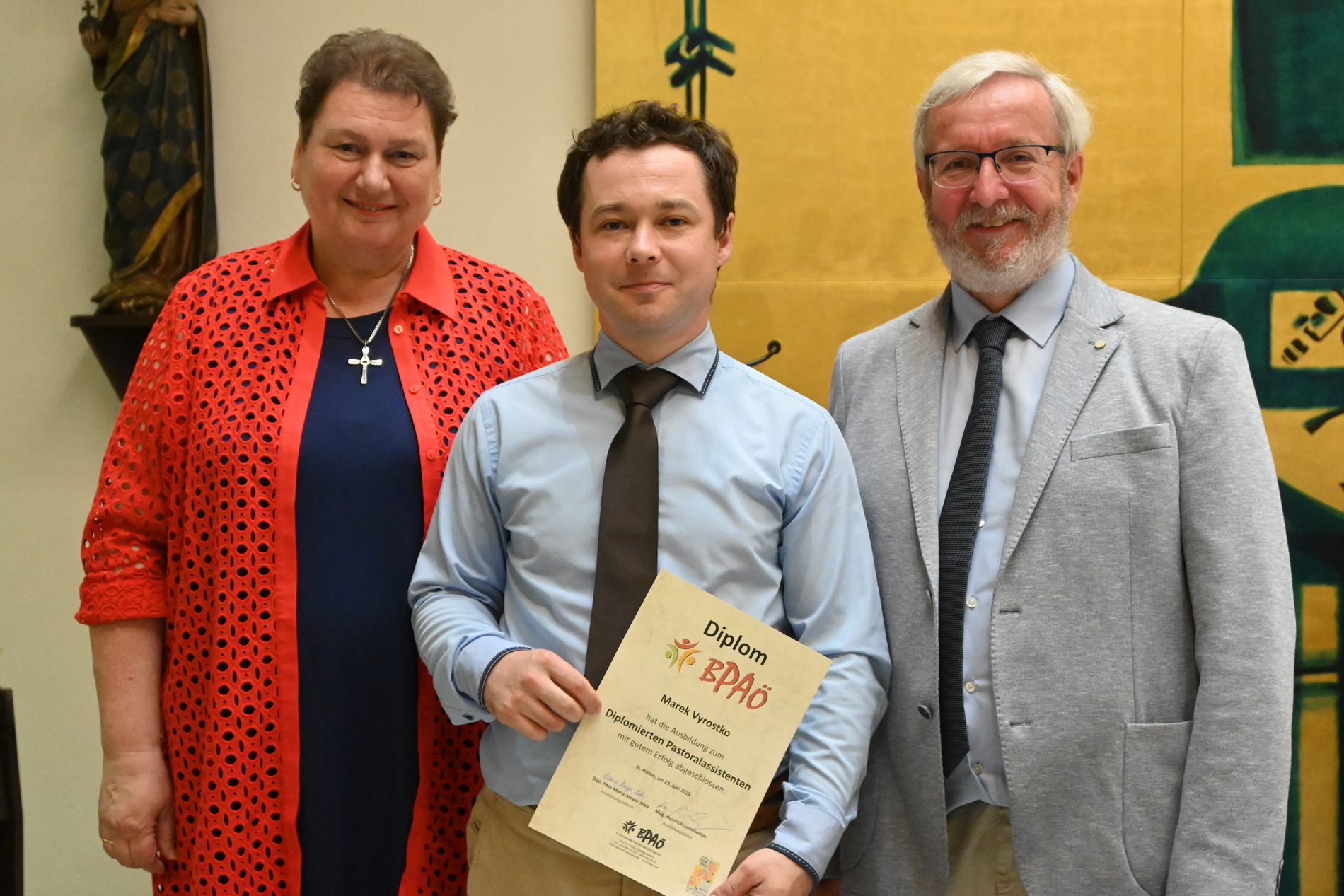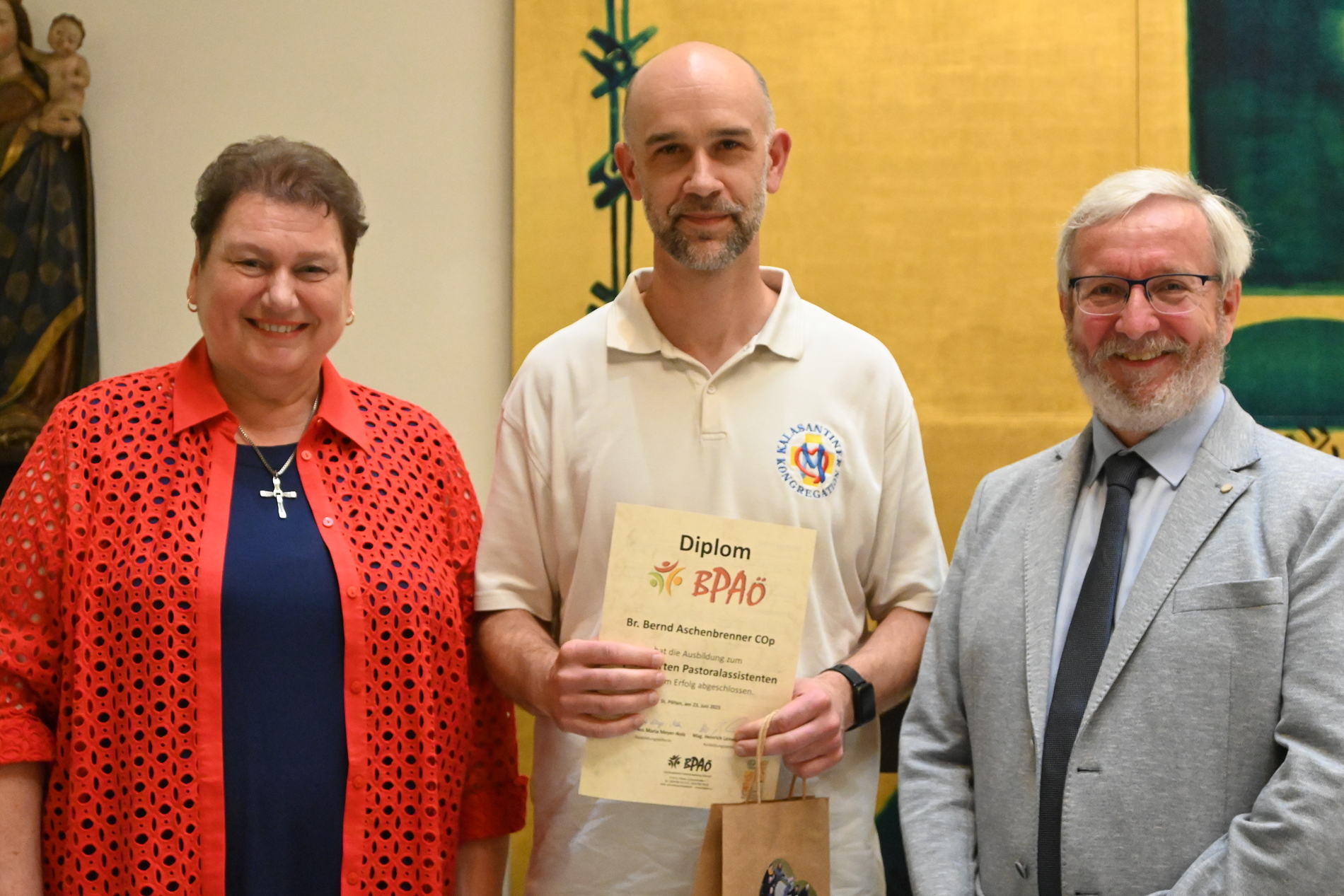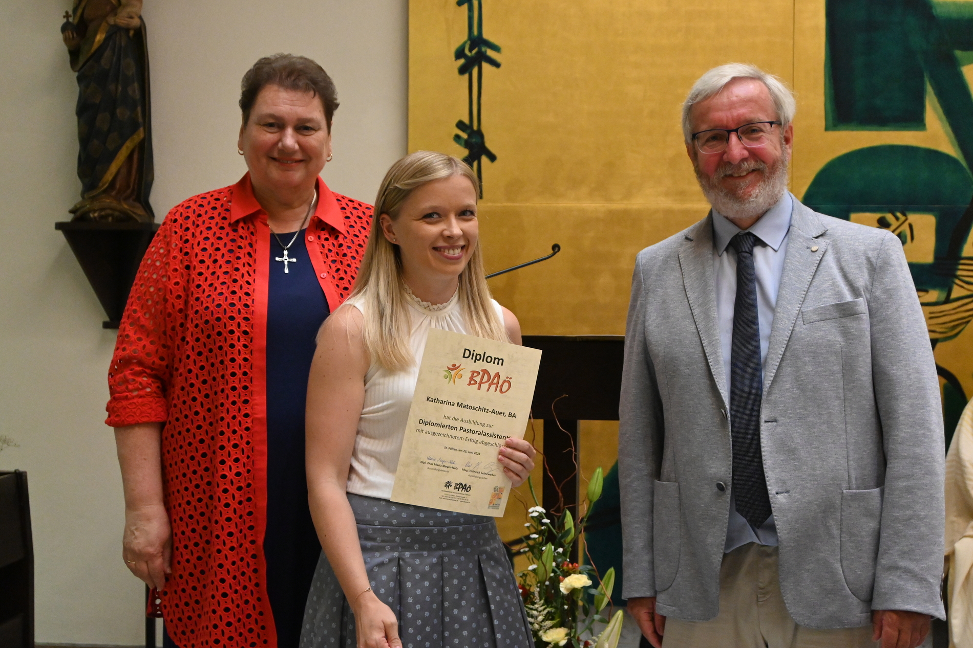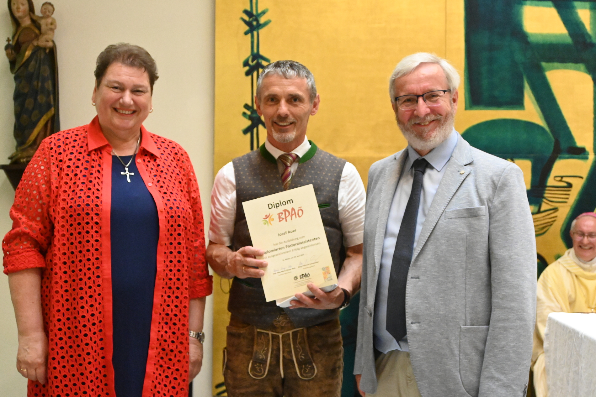Die Diplomfeier fand in einem festlichen Rahmen statt, der den Ernst der Errungenschaften der Absolventen widerspiegelte. Die Feier begann mit einer feierlichen Messe, der Weihbischof Anton Leichtfried vorstand. In seiner Predigt betonte er die Bedeutung der pastoralen Arbeit und ermutigte die Absolventen, ihren Dienst mit Hingabe und Mitgefühl fortzusetzen: „Mit großem Respekt und Dankbarkeit gratuliere ich euch. Erinnern wir uns in der Arbeit der Seelsorge, was die Seelsorge für ein Schatz ist. Ihr habt mit vielen Menschen Kontakt – mit vielen Schätzen. Diese Menschen begleiten zu dürfen, ist eine wunderbare Aufgabe. Und man entdeckt, wie in einer großen Schatztruhe, immer mehr Schätze.“