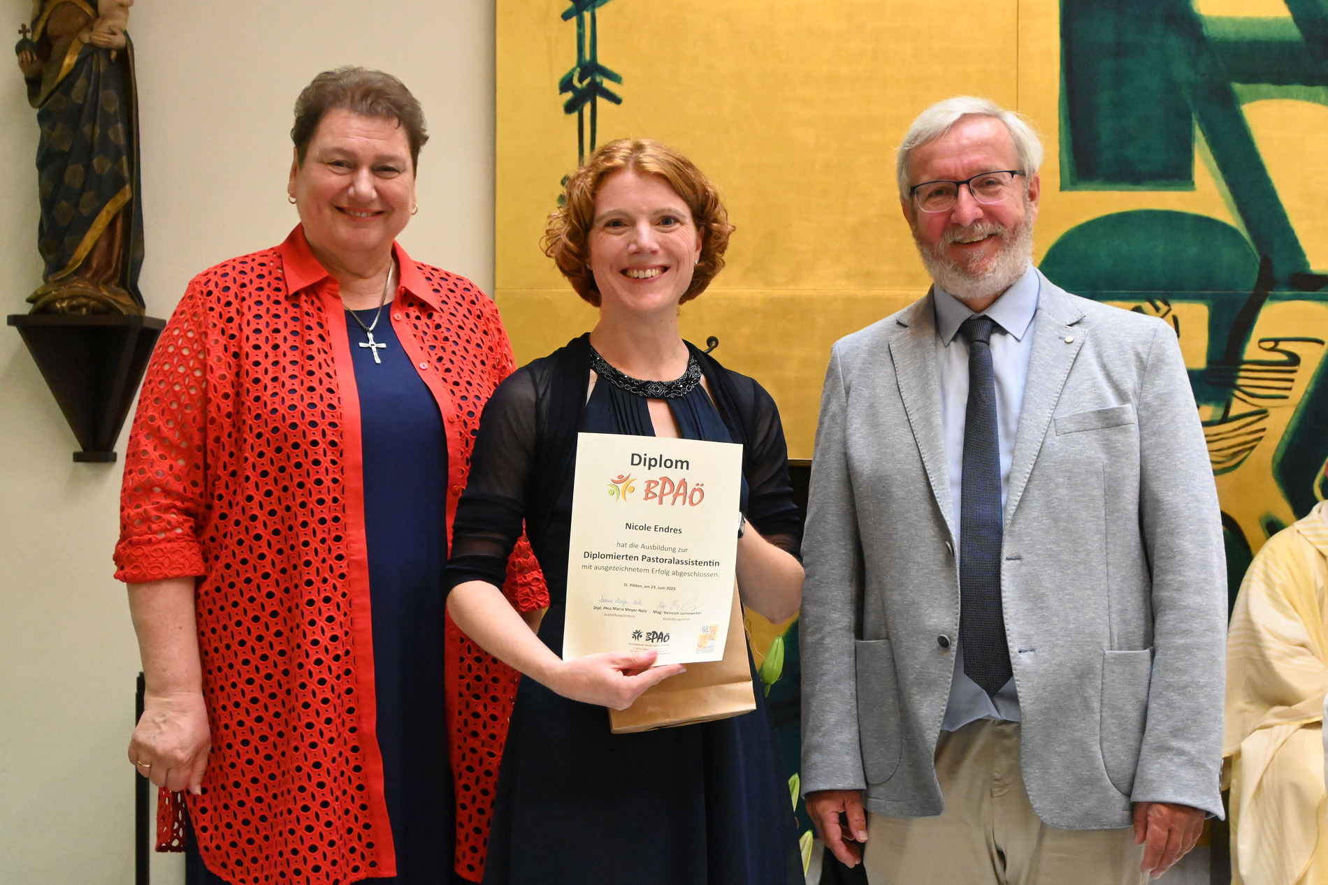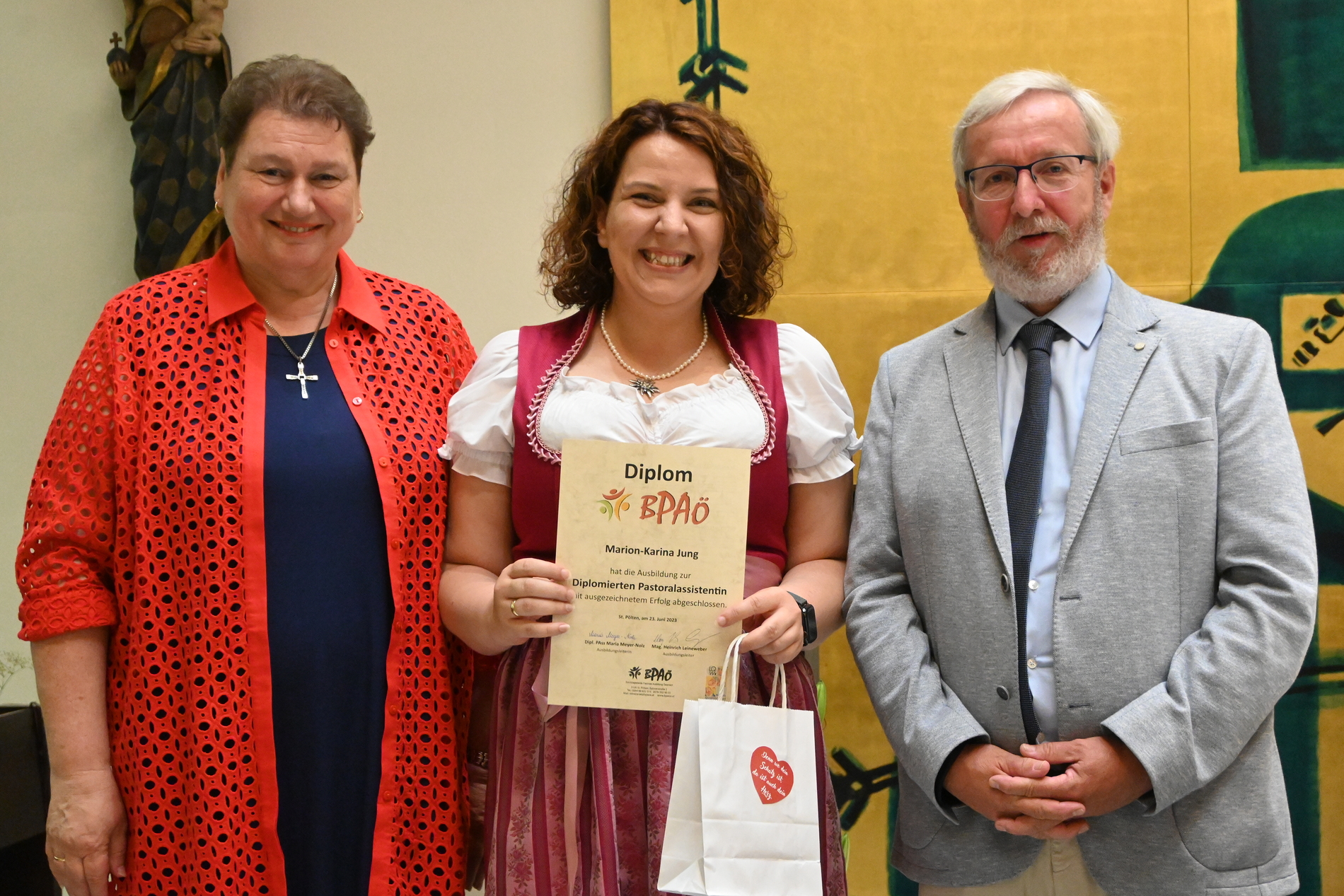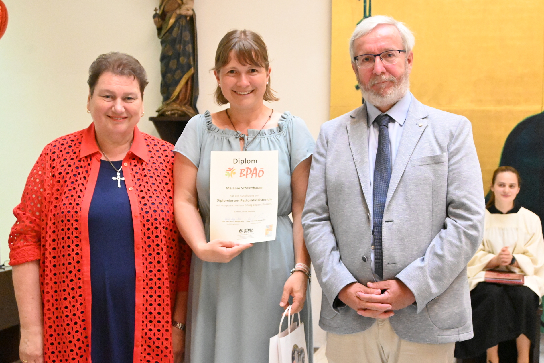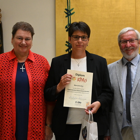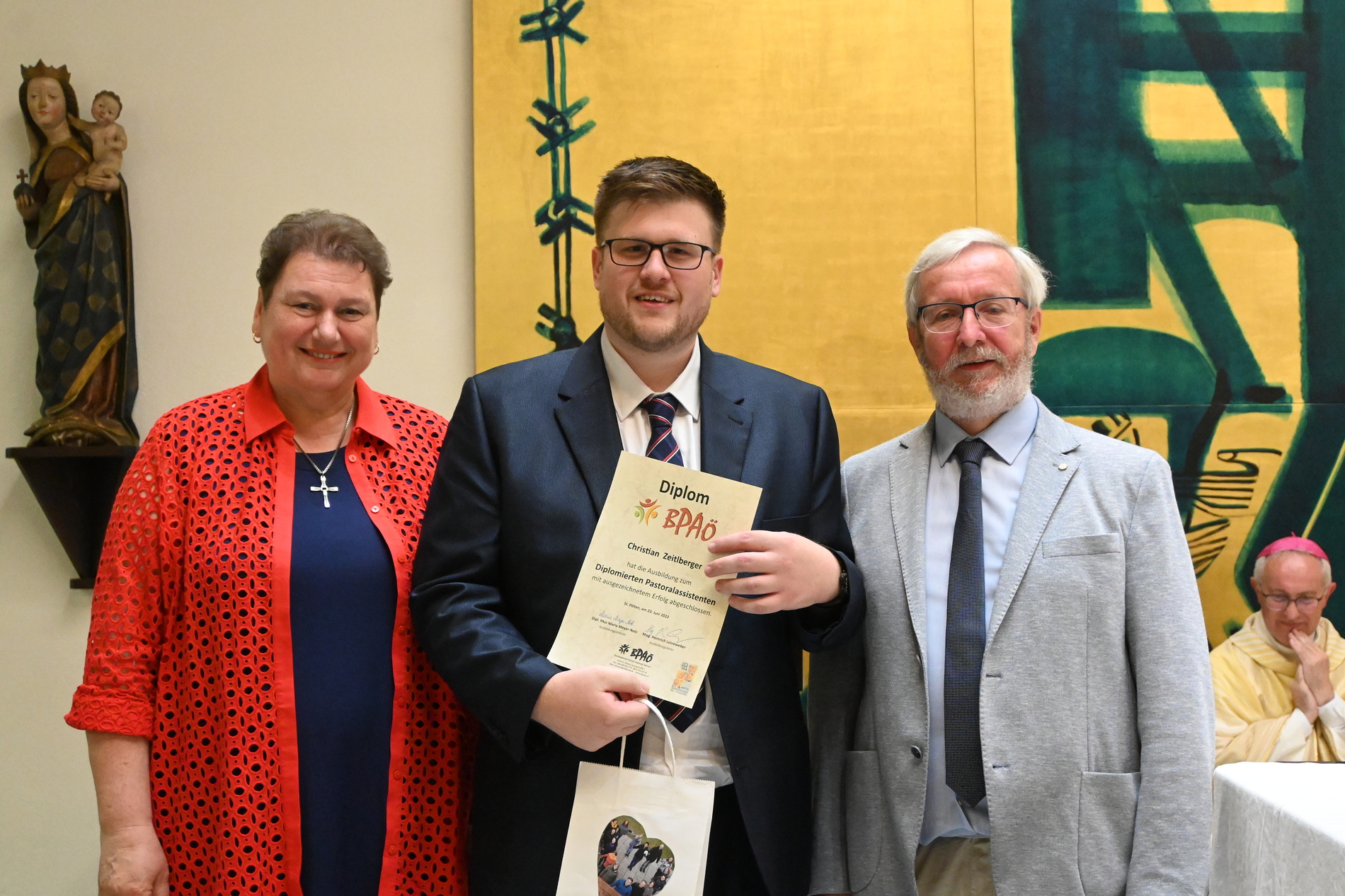 Die Diplomfeier fand in einem festlichen Rahmen statt, der den Ernst der Errungenschaften der Absolventen widerspiegelte. Die Feier begann mit einer feierlichen Messe, der Weihbischof Anton Leichtfried vorstand. In seiner Predigt betonte er die Bedeutung der pastoralen Arbeit und ermutigte die Absolventen, ihren Dienst mit Hingabe und Mitgefühl fortzusetzen: „Mit großem Respekt und Dankbarkeit gratuliere ich euch. Erinnern wir uns in der Arbeit der Seelsorge, was die Seelsorge für ein Schatz ist. Ihr habt mit vielen Menschen Kontakt – mit vielen Schätzen. Diese Menschen begleiten zu dürfen, ist eine wunderbare Aufgabe. Und man entdeckt, wie in einer großen Schatztruhe, immer mehr Schätze.“
