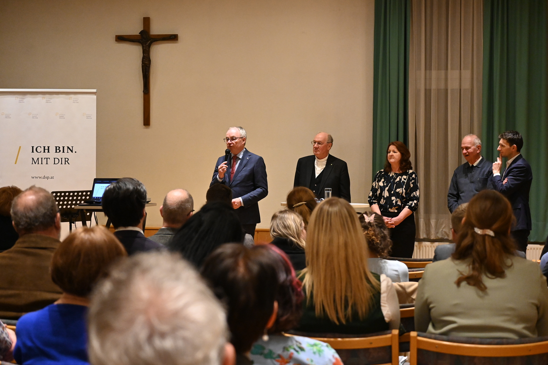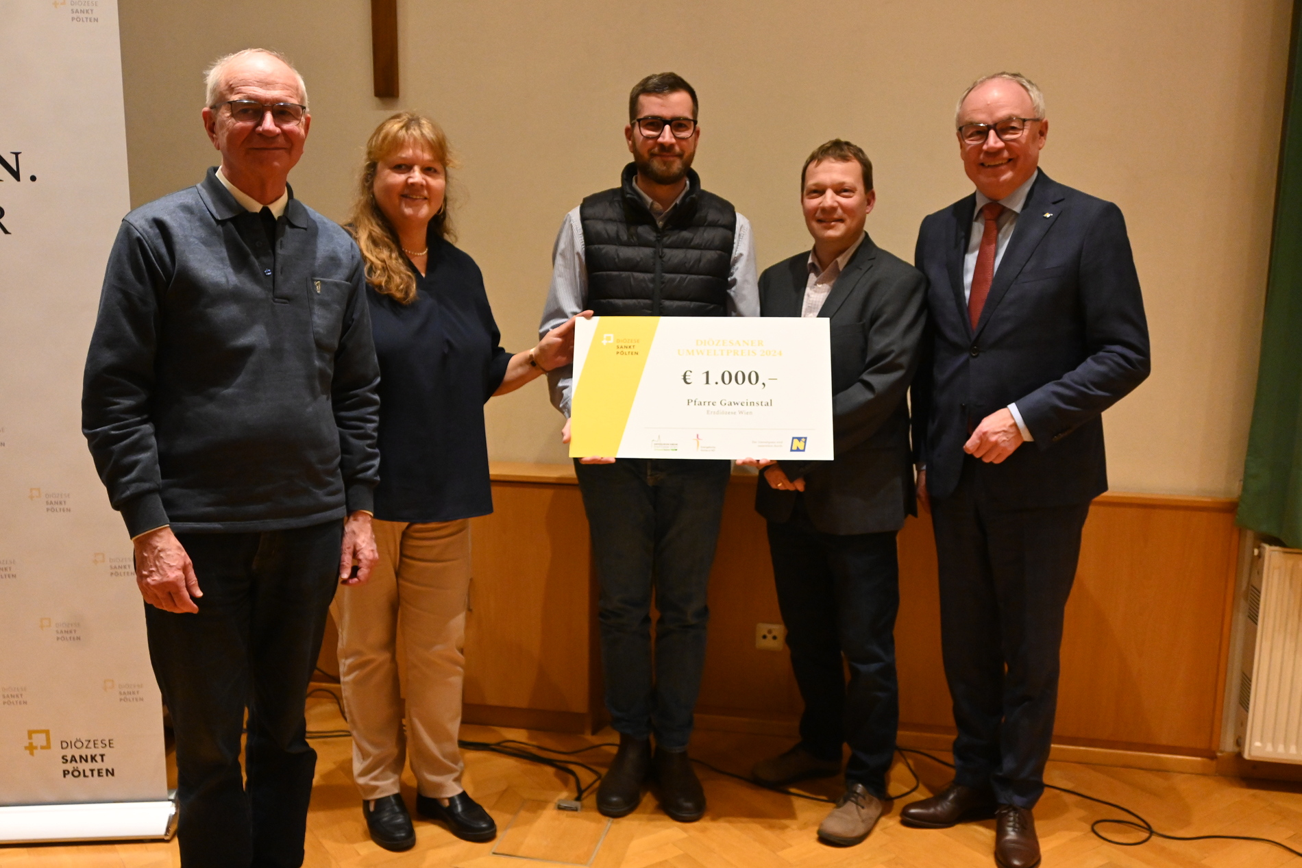 Die Gewinnerprojekte der Diözese St. Pölten wurden mit einer kurzen Präsentation vorgestellt, bevor die Pfarren von Bischof Schwarz, LH-Stv. Stephan Pernkopf und Axel Isenbart ihre Urkunden entgegennahmen.