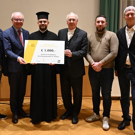 Die Gewinnerprojekte der Erzdiözese Wien wurden durch Superintendent Simmer, Domdekan Prokschi, LH-Stv. Pernkopf sowie Inge Janda und Markus Gerhartinger überreicht.