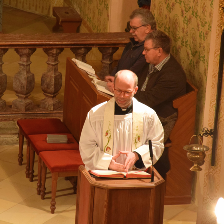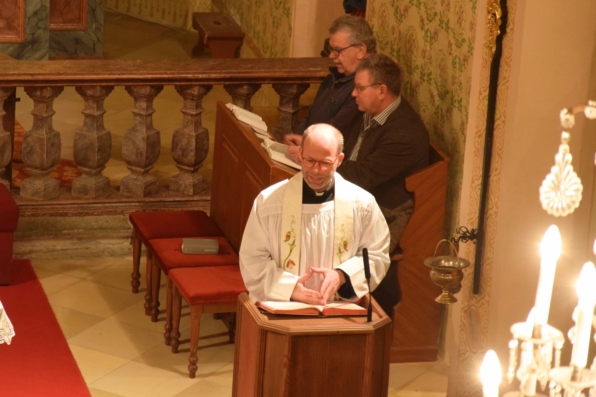 Schon beim Betreten der Kirche wurden die Gäste von einer besonderen Stimmung empfangen: Die Pfarrgemeinderäte hatten Gläser mit Lichtern aufgestellt, die in der Dunkelheit einen leuchtenden Weg wiesen. Der Abend begann mit einer feierlichen Andacht, zelebriert von Generalvikar Dr. Christoph Weiss, die die Besucher auf das gemeinsame Erleben einstimmte.