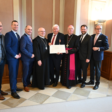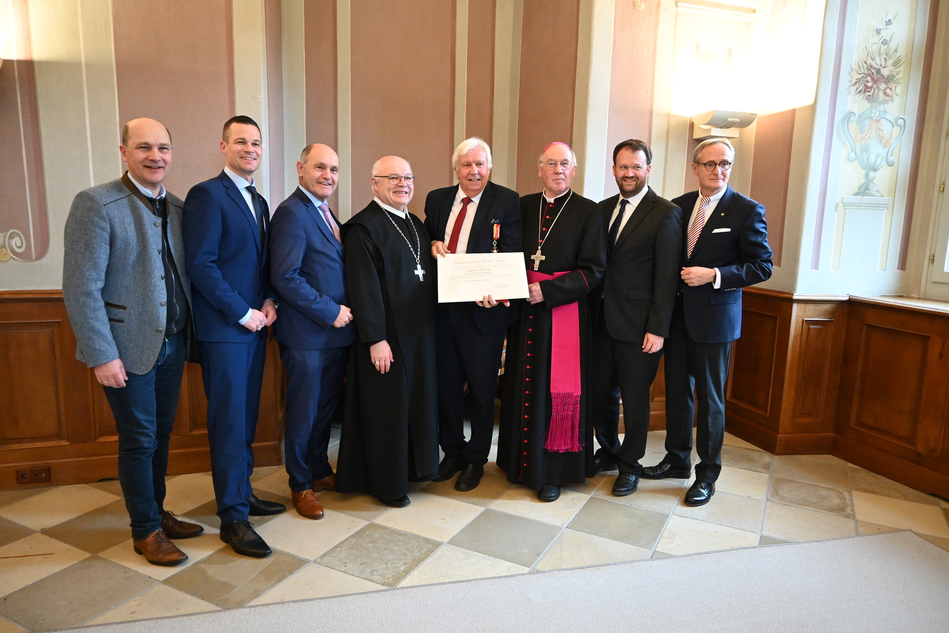 Im feierlichen Rahmen des barocken Sommerrefektoriums der Diözese St. Pölten wurde der ehemalige Bildungsdirektor für Niederösterreich Hofrat Johann Heuras mit einer der höchsten Auszeichnungen geehrt, die die katholische Kirche zu vergeben hat: dem päpstlichen Gregoriusorden. Die Verleihung erfolgte durch Diözesanbischof Alois Schwarz im Beisein zahlreicher Weggefährtinnen und Weggefährten, Vertreterinnen und Vertreter aus Kirche, Politik und Gesellschaft sowie der Familie des Geehrten.