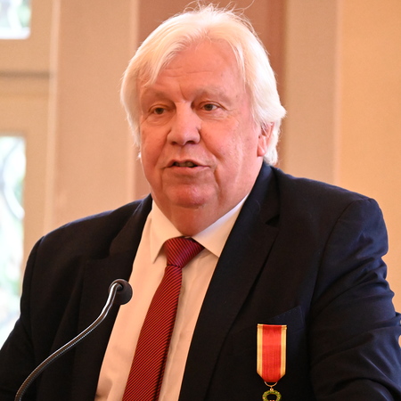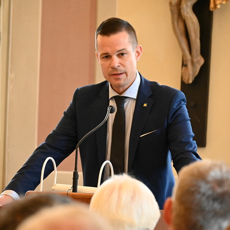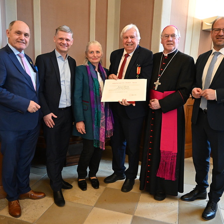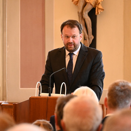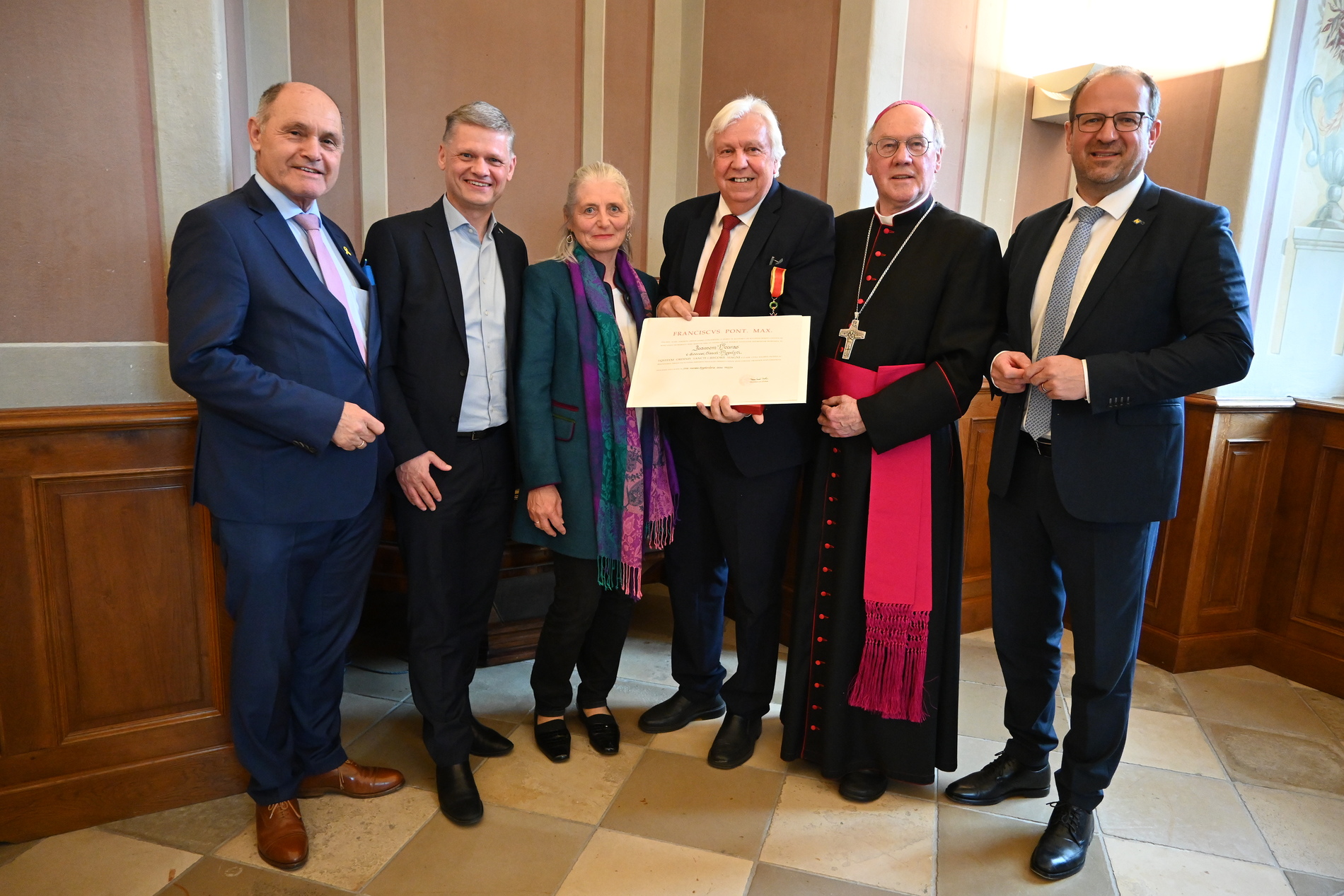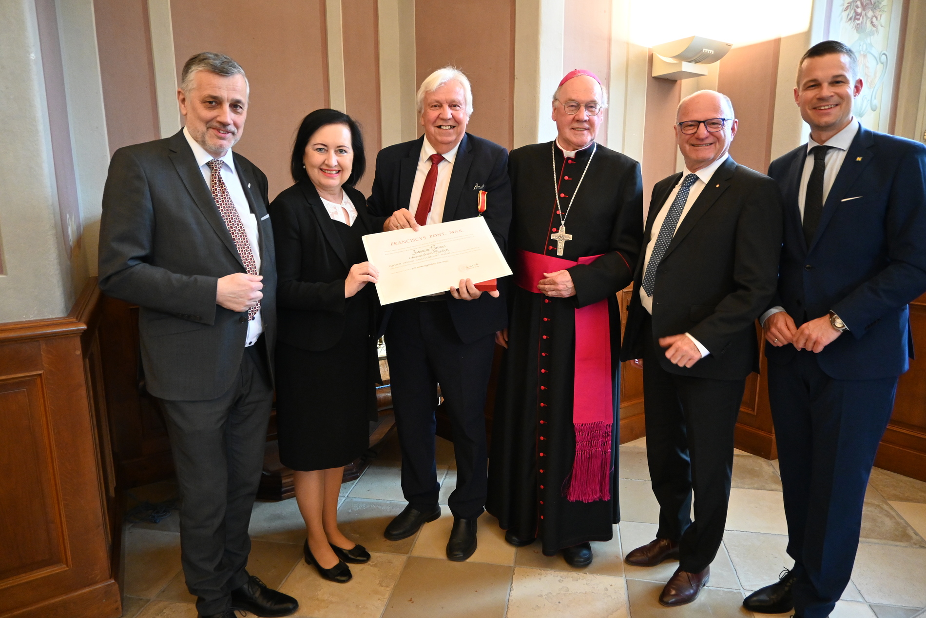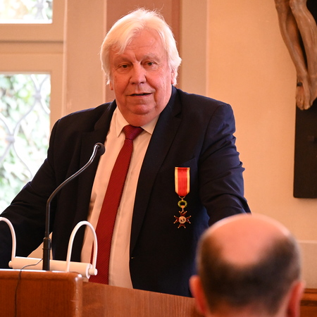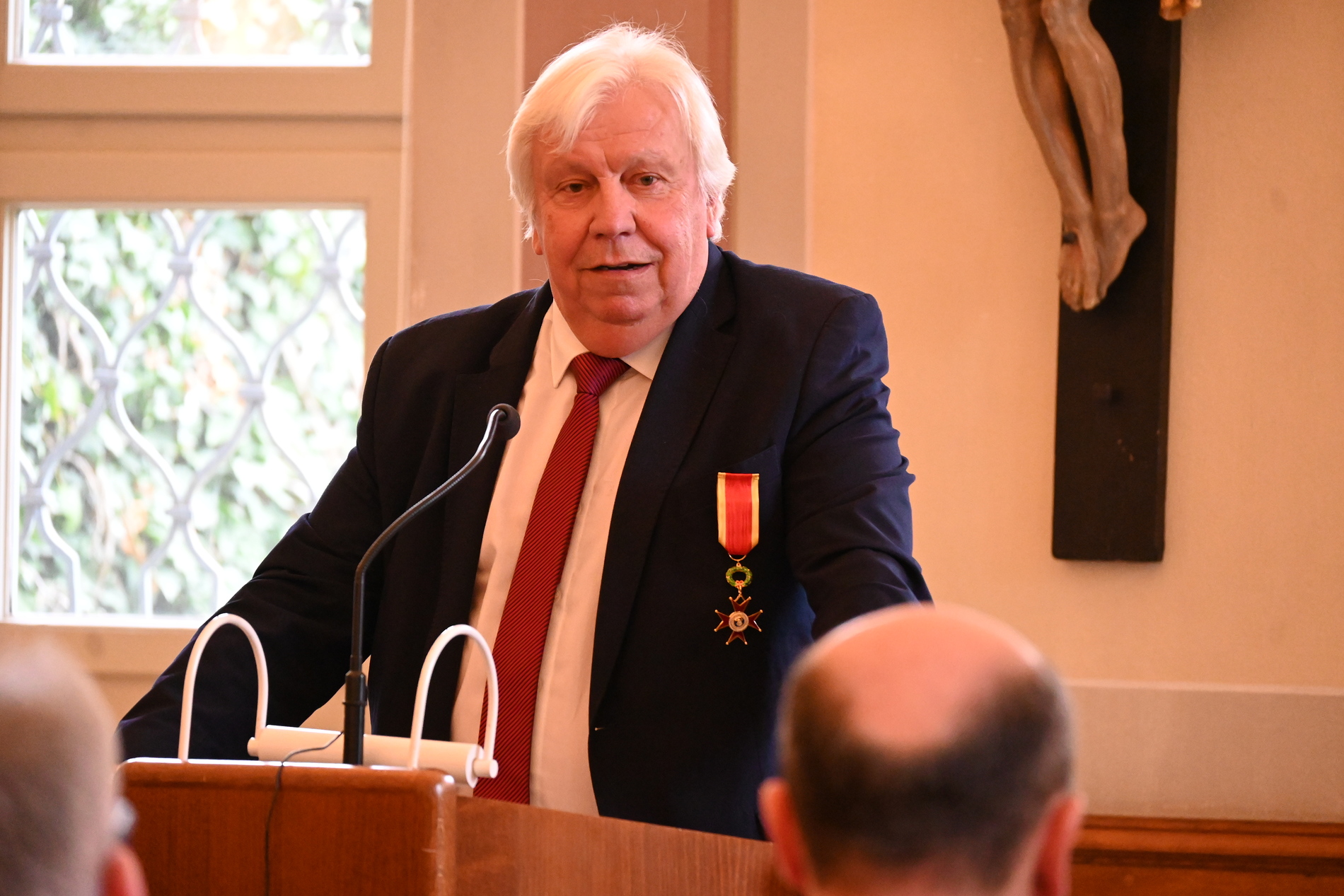 Sichtlich bewegt nahm der Geehrte die Auszeichnung entgegen und bedankte sich für das Vertrauen und die Wertschätzung: „Ich bin dankbar für die vielen Menschen, mit denen ich auf meinem Weg gemeinsam wirken durfte. Ich bin dankbar für die vielen Freundinnen und Freunde, die mich begleitet haben. Vor allem meiner Familie und meiner Frau. Ein herzliches Dankeschön an alle, die mir geholfen haben und mich unterstützt haben. Das alles hat mir Kraft gegeben.“