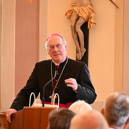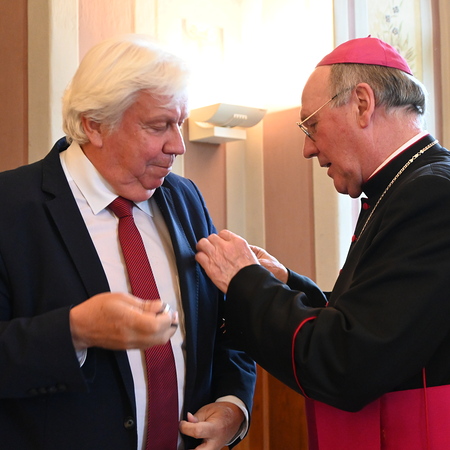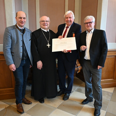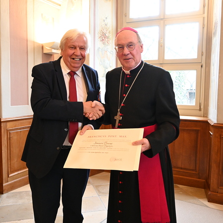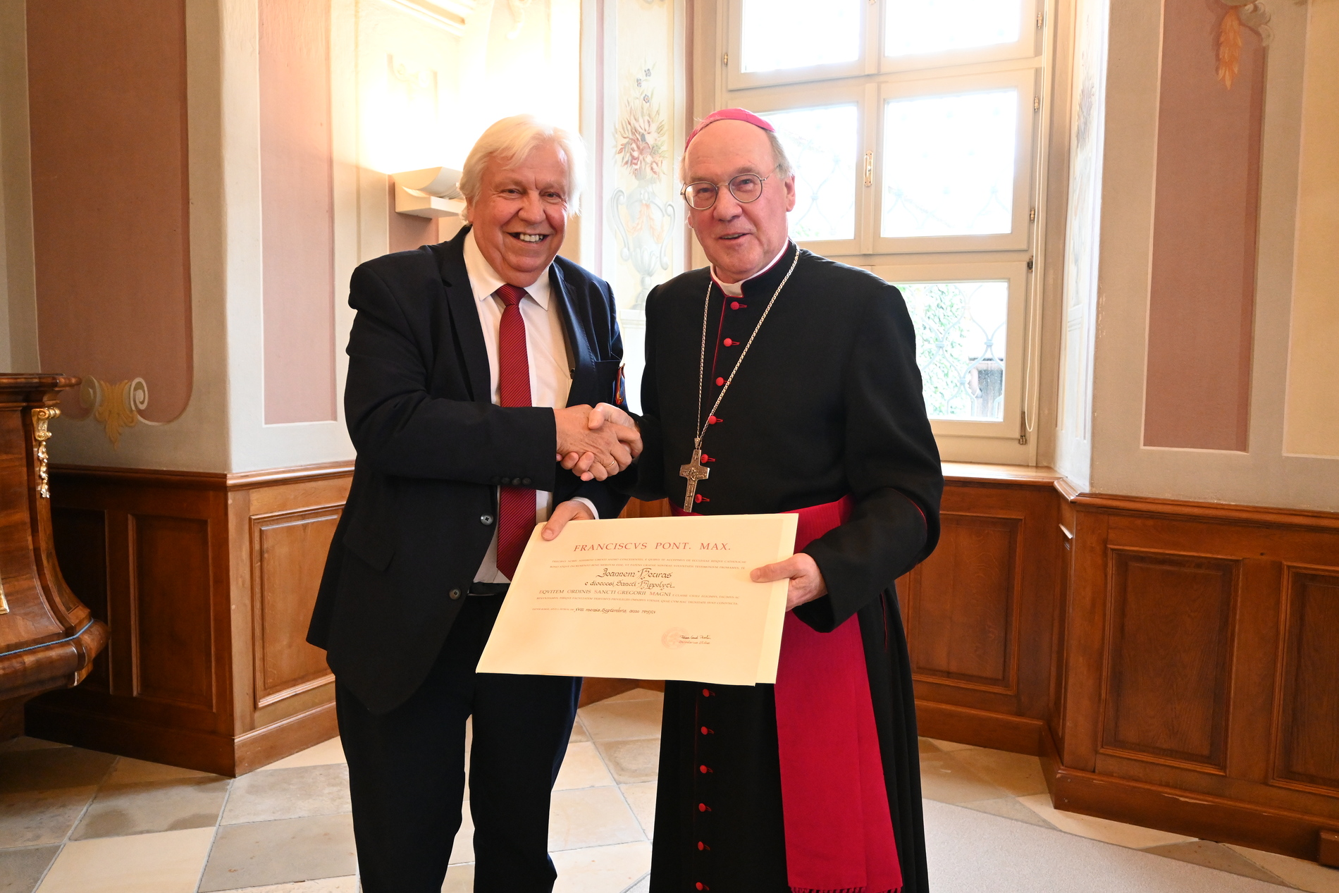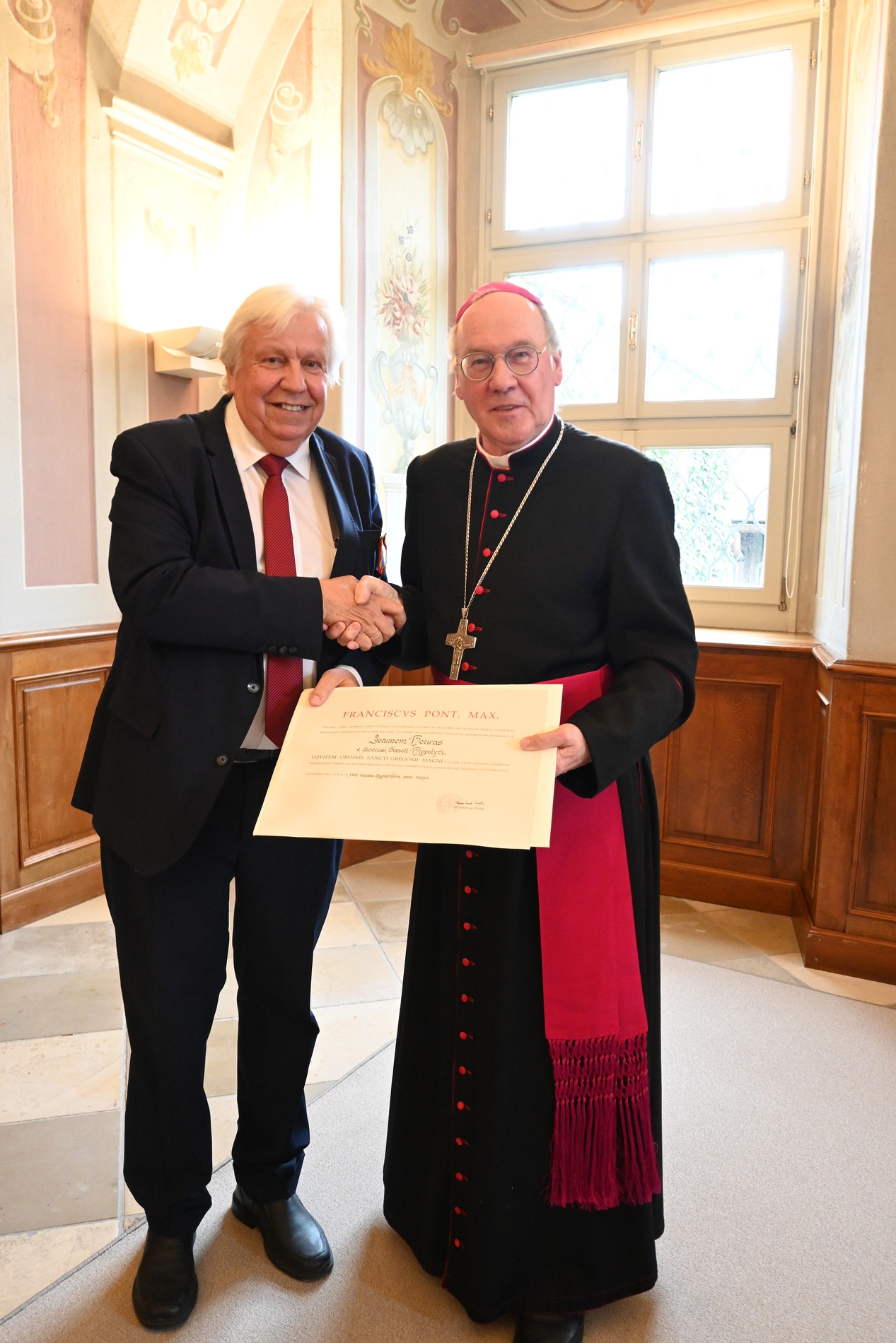 Bischof Schwarz würdigte das langjährige, vielseitige und engagierte Wirken von Johann Heuras im Dienst des Gemeinwohls und der Kirche: