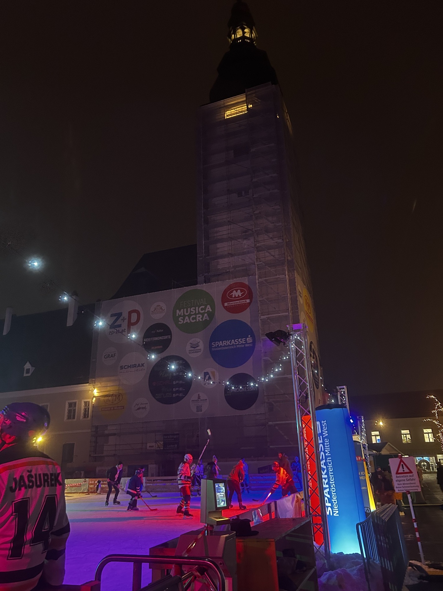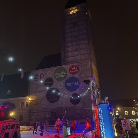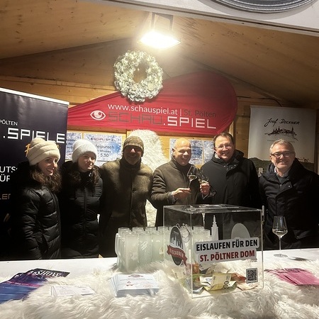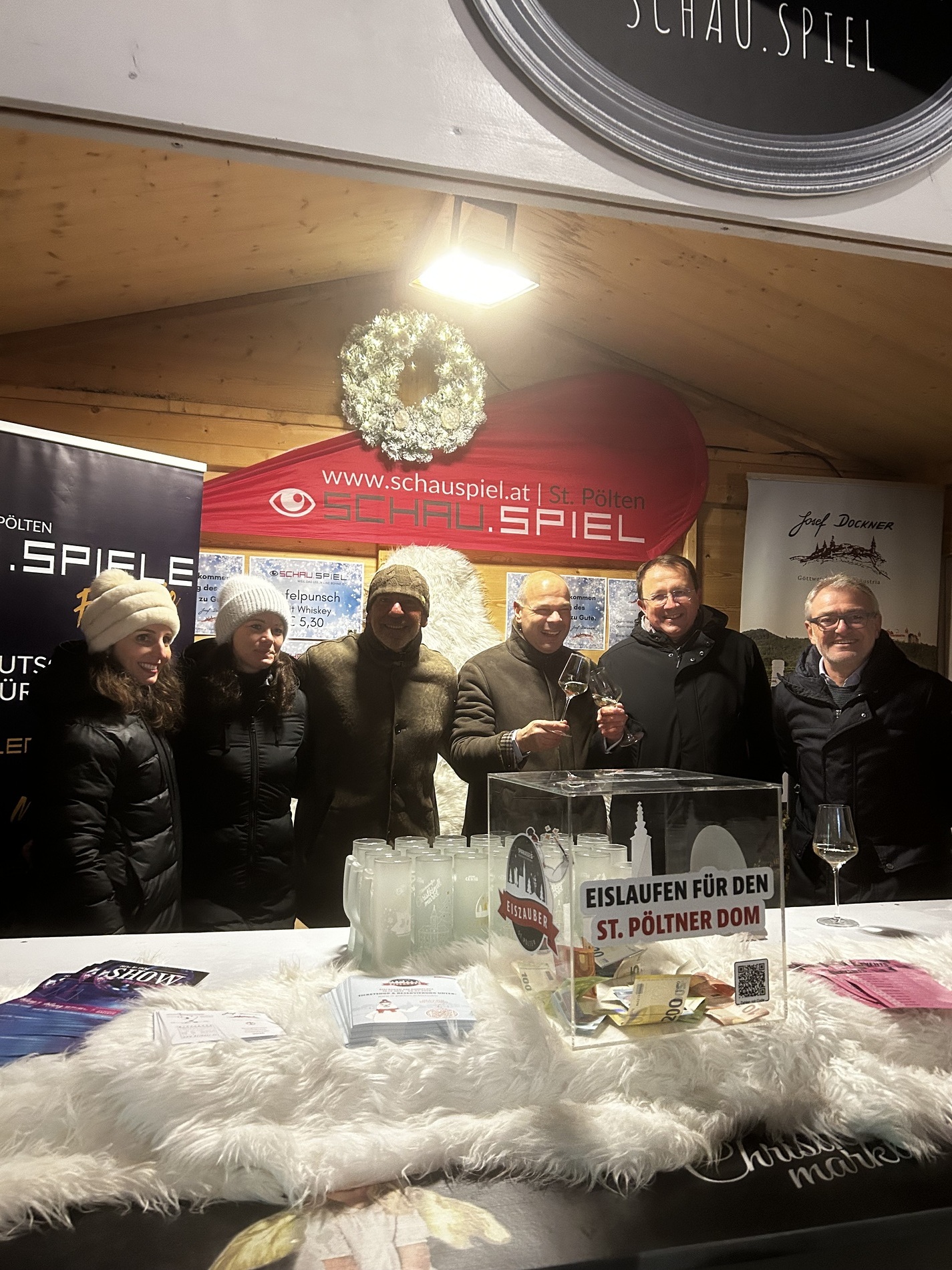Rund ums Eis wird kulinarisch einiges geboten! Das Event wurde tatkräftig von der „Spielefamilie“ und den ehrenamtlichen Mitgliedern des Spendenvereins unterstützt - Weinverkostung, Apfelpunsch, Glühwein und Eislaufen standen am Programm. Sogar unser Bürgermeister Matthias Stadler war am Eis und hat im Anschluss den „Dom-Wein“ des Weingutes Josef Dockner verkostet! Den Wein gibt es auch in 2er und 3er Kartons vor Ort zum Kaufen.