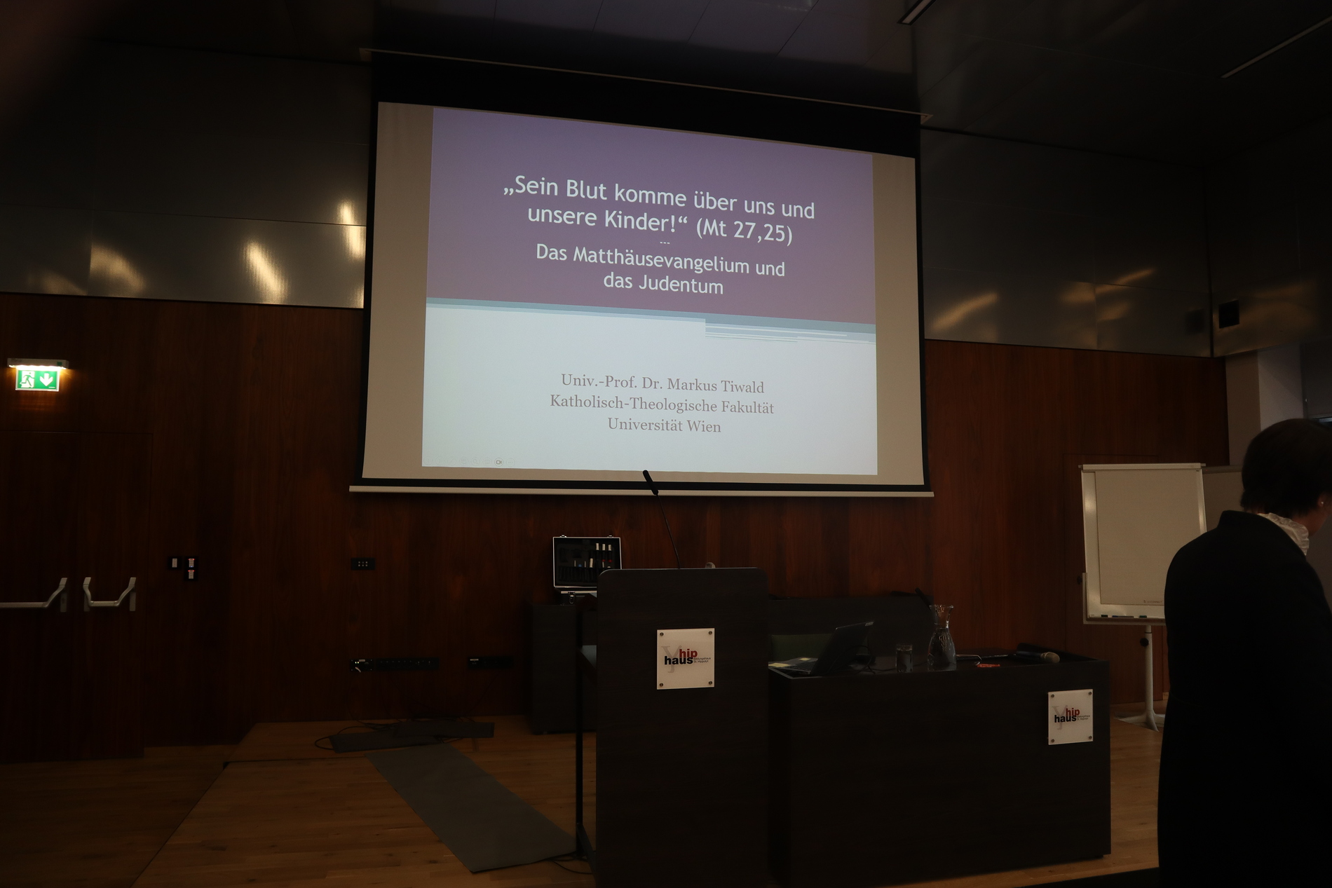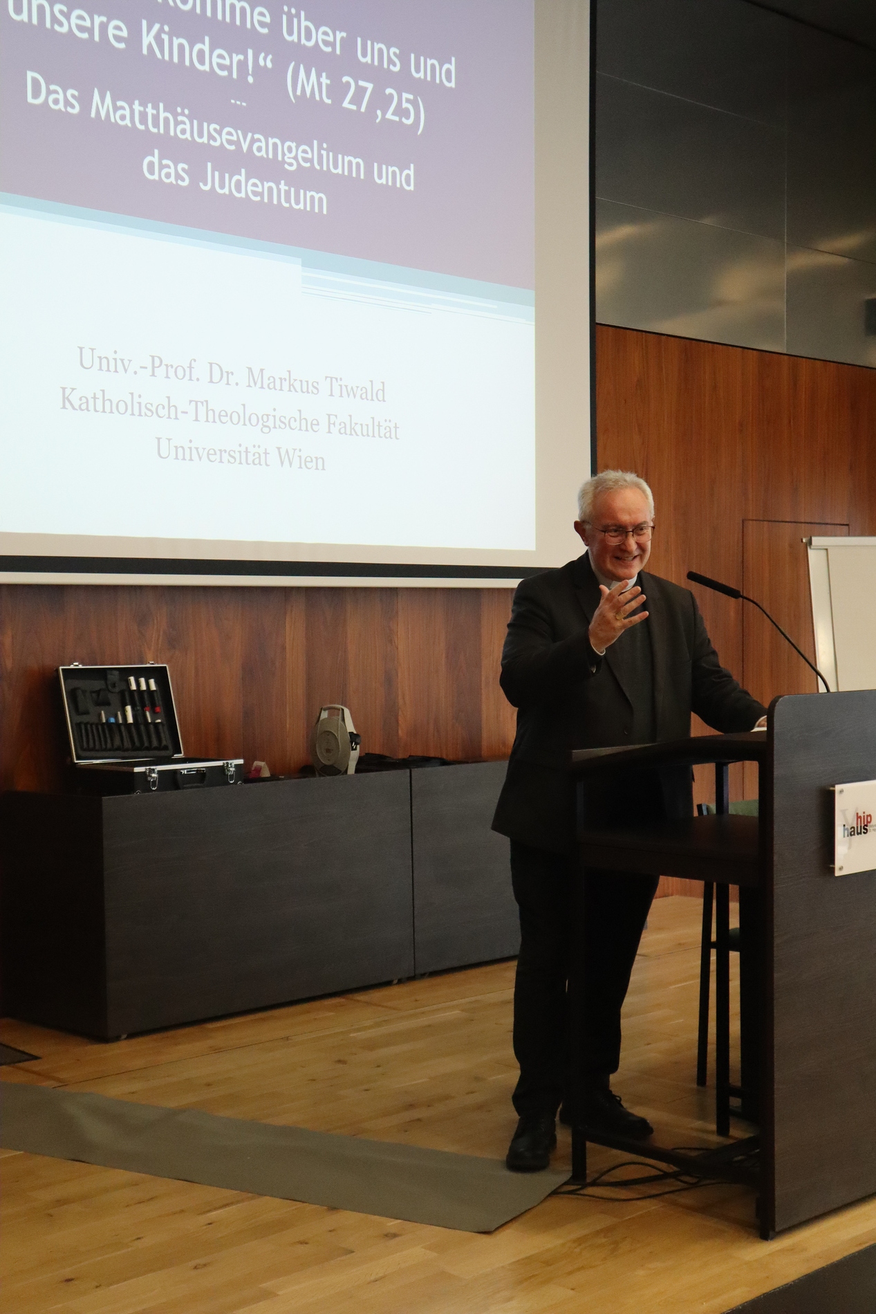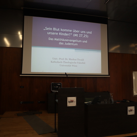 Den Auftakt am Montag bildete nach Eucharistiefeier und Begrüßung durch Weihbischof Anton Leichtfried ein Vortrag von Univ.-Prof. Dr. Markus Tiwald (Wien) zum Verhältnis des Matthäusevangeliums zum Judentum sowie zum Thema Antijudaismus. Eine schwierige Stelle ist etwa der sogenannte "Blutruf": "Da rief das ganze Volk: Sein Blut komme über uns und unsere Kinder!" (Mt 27, 25). Tiwald erinnerte daran, dass der kirchliche Antijudaismus den Antisemitismus der Nazis aufbereitet hat. Am Nachmittag sprach ao. Univ.-Prof. i.R. Mag. Dr. Martin Stowasser (Wien) über das Matthäusevangelium und seine Verwurzelung im Alten Testament.