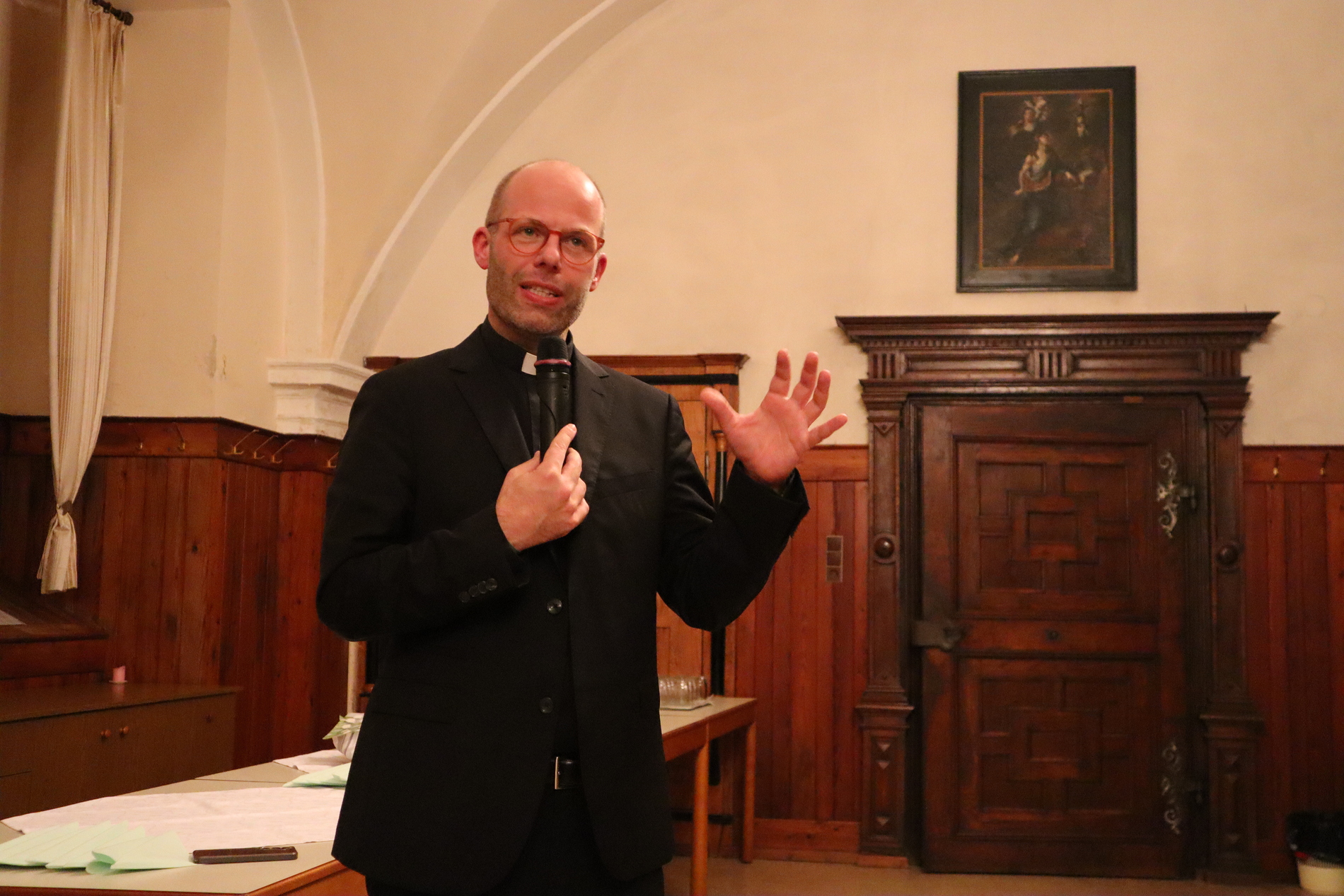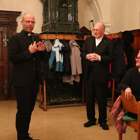 Als geistlicher Impuls diente eine Schriftstelle aus dem Matthäusevangelium (Mt 14, 22–32), in der Jesus auf dem Wasser zu seinen Jüngern kommt. Besonders die Begegnung zwischen Jesus und Petrus stand im Mittelpunkt der Betrachtung: Petrus wagt den Schritt aus dem Boot, doch als er den starken Wind spürt, bekommt er Angst und beginnt zu sinken. Jesus streckt ihm die Hand entgegen und rettet ihn. Diese Szene lädt dazu ein, über Vertrauen, Zweifel und den Mut zum Glauben nachzudenken – Erfahrungen, die viele Menschen auch in ihrem eigenen Glaubensweg kennen. Von persönlichen Bekehrungen oder Erfahrungen über die Fülle und spürbare Gegenwart Gottes über die tägliche Pfarrarbeit bis hin zur Glaubensvermittlung in einer verständlichen und greifbaren Sprache im Religionsunterricht deckten die Gespräche eine weite Spannbreite an Themen.