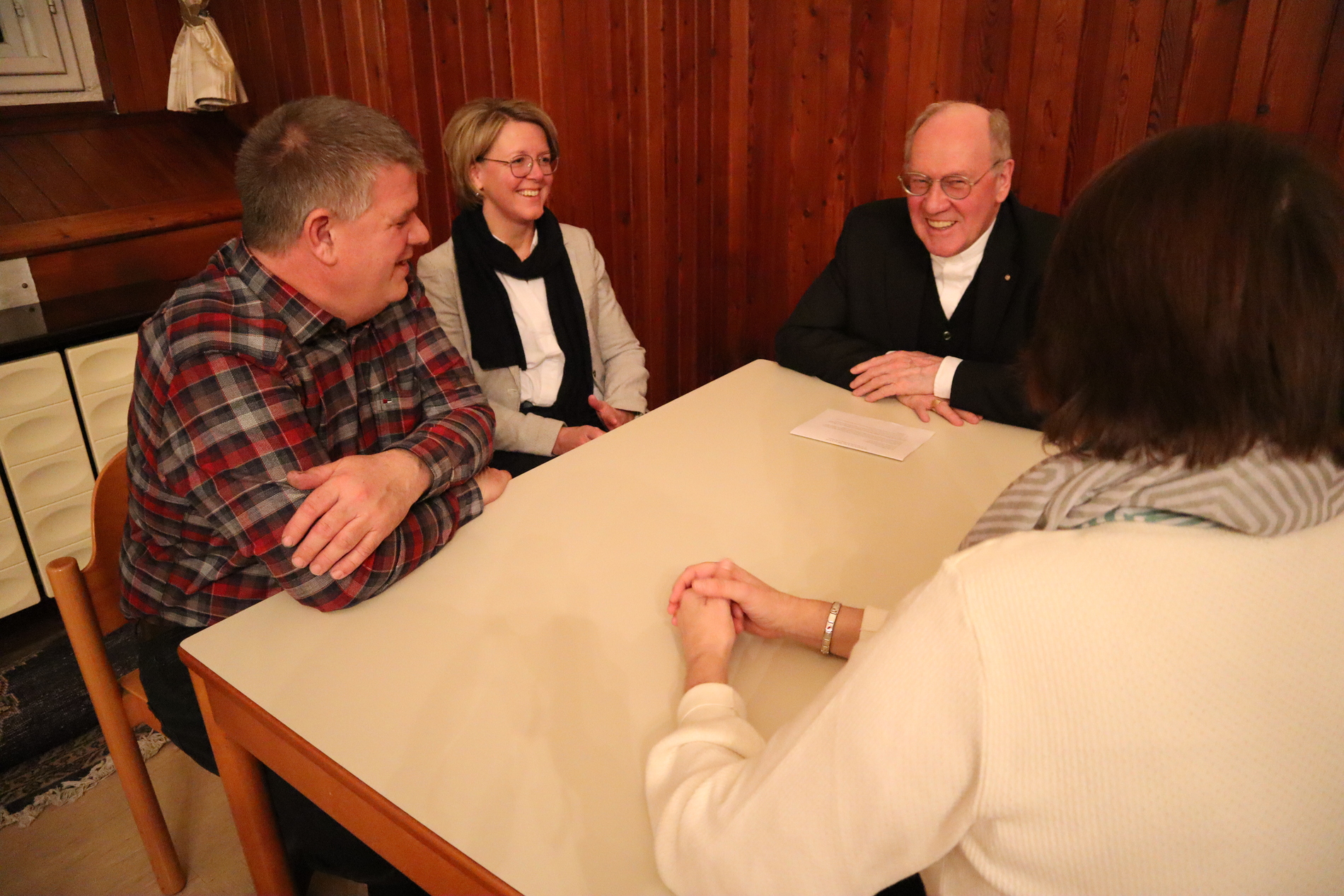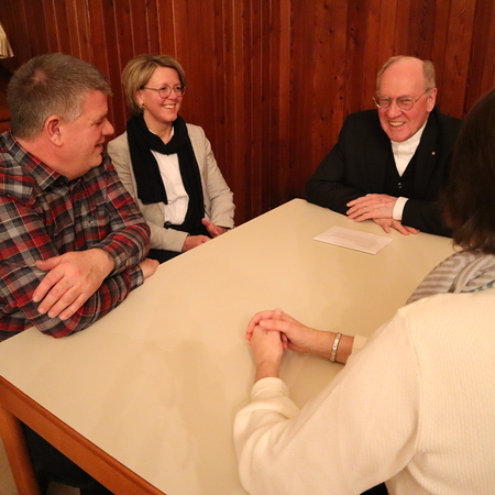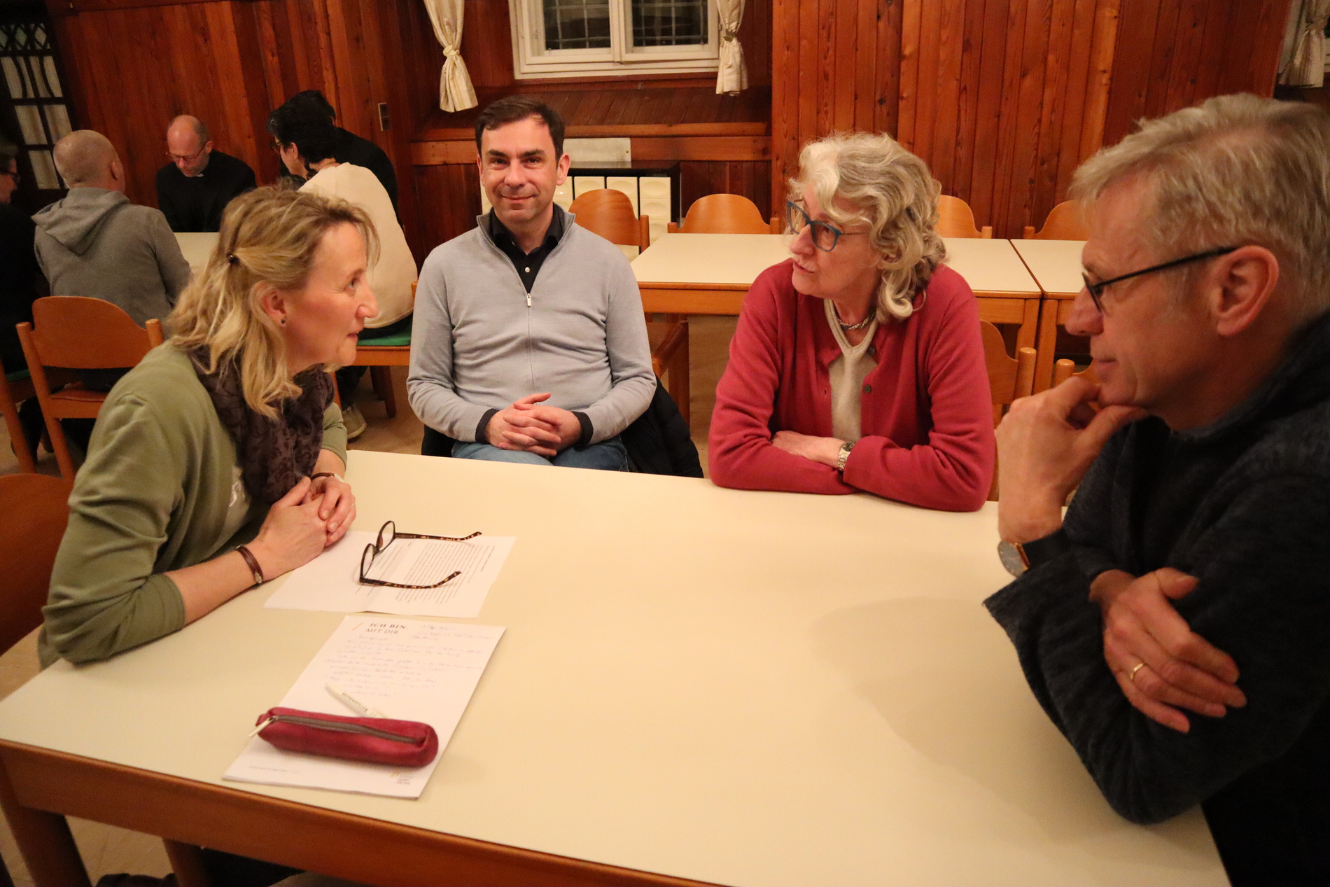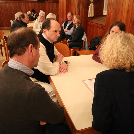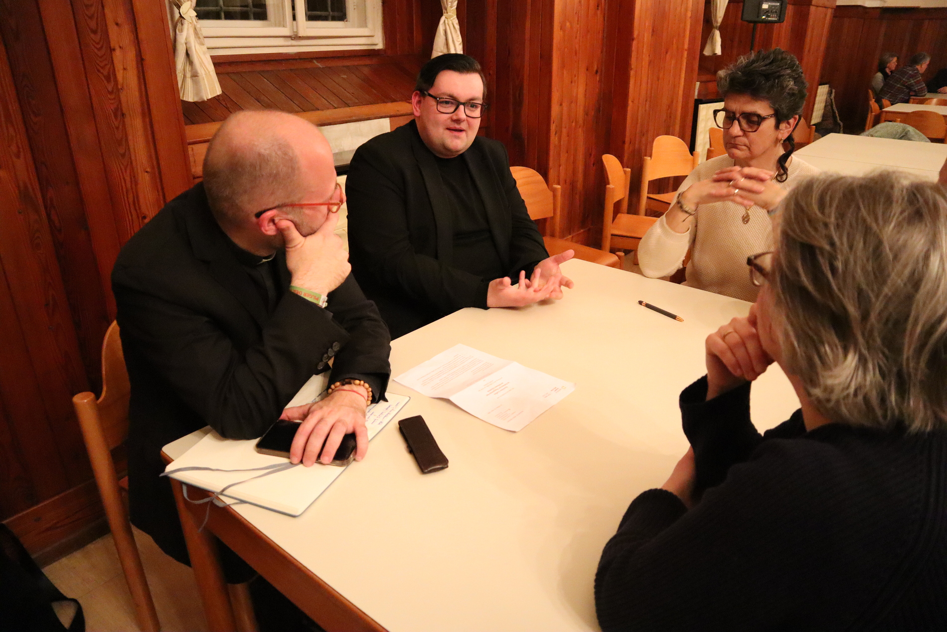 Im Mittelpunkt des Abends standen die Gespräche in Kleingruppen. Diese Form ermöglichte es allen – u.a. Pfarrern, Regionalbegleitern und Pastoralcoaches –, ihre Gedanken einzubringen und einander zuzuhören. Das Gespräch folgte einem klaren Ablauf und wurde von drei Fragen geleitet: