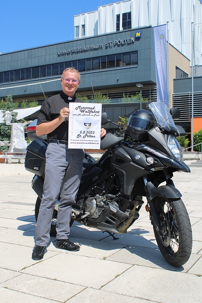 Bereits zum zweiten Mal veranstaltet der Krankenhauspfarrer des Universitätsklinikums St. Pölten Martin Hochedlinger mit seinen Unterstützerninnen und Unterstützern eine Motorradwallfahrt für einen guten Zweck. Dieses Mal steht die Wallfahrt unter dem Motto „Wir fahren für Kinder“.